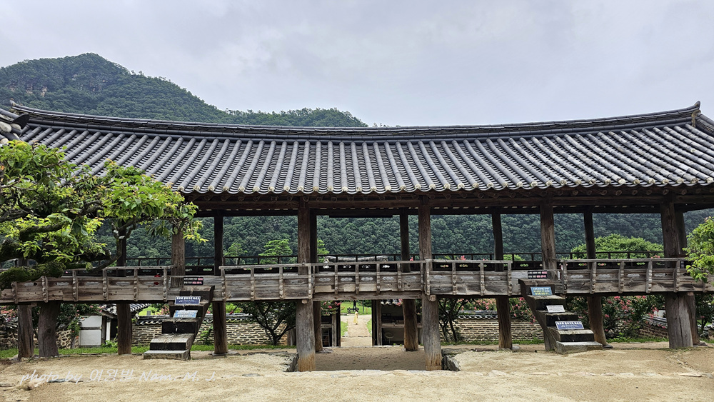서원의 중심에 있는 입교당(강당) 마루에 앉으면 만대루 기둥 사이를 통해서 바라보는 8폭의 자연 병풍은