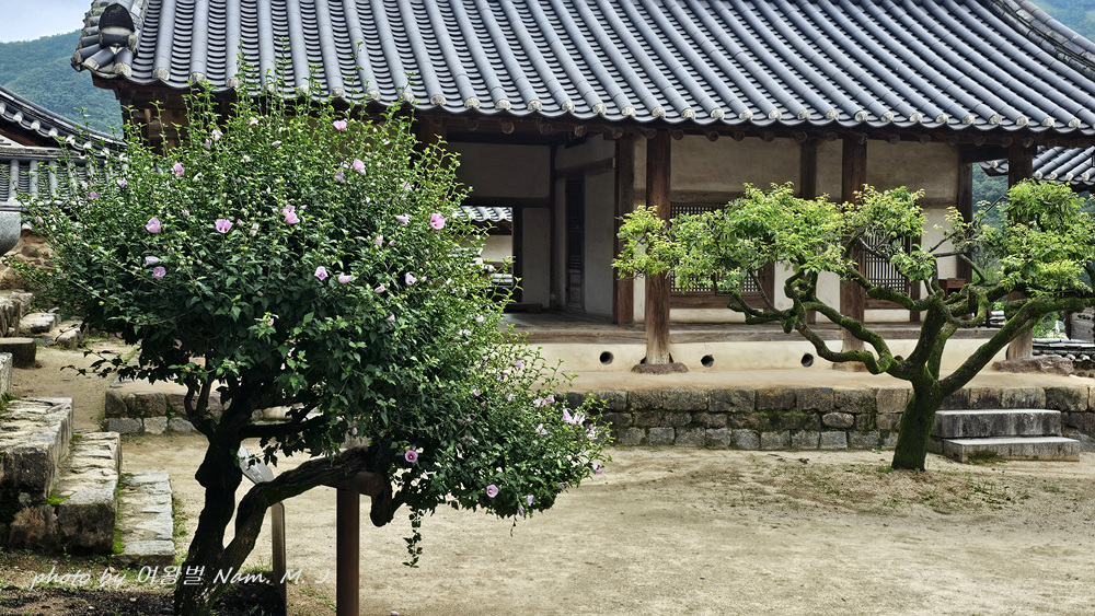 서원 마당의 매실나무와 무궁화