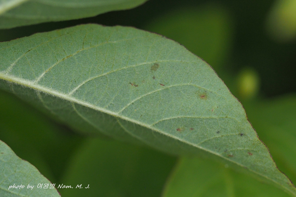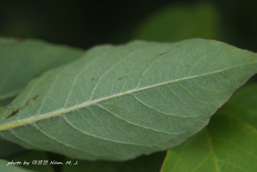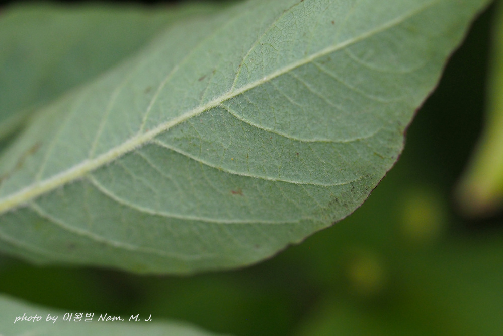 잎 뒷면 전체에 털이 있다