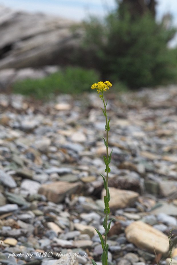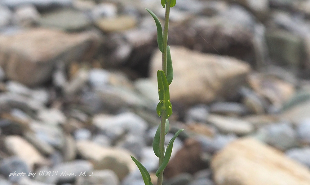 호수변에서 만난 이 녀석은 엽저에 귀가 발달하여 줄기를 감싸고 잎과 줄기 모습은 장대나물과 비슷하다.