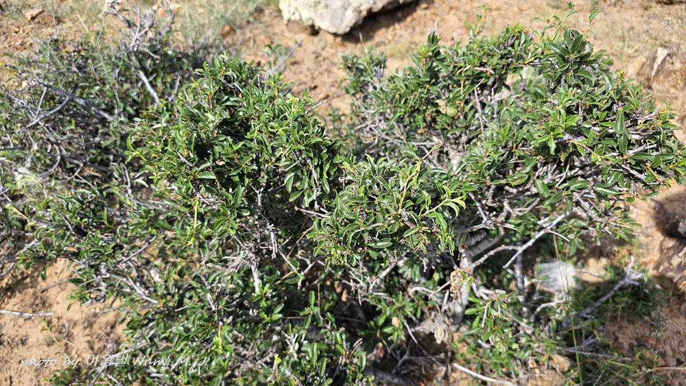 바위산 건조한 바위 틈에 짧은 가지 끝이 가시화되어 있고