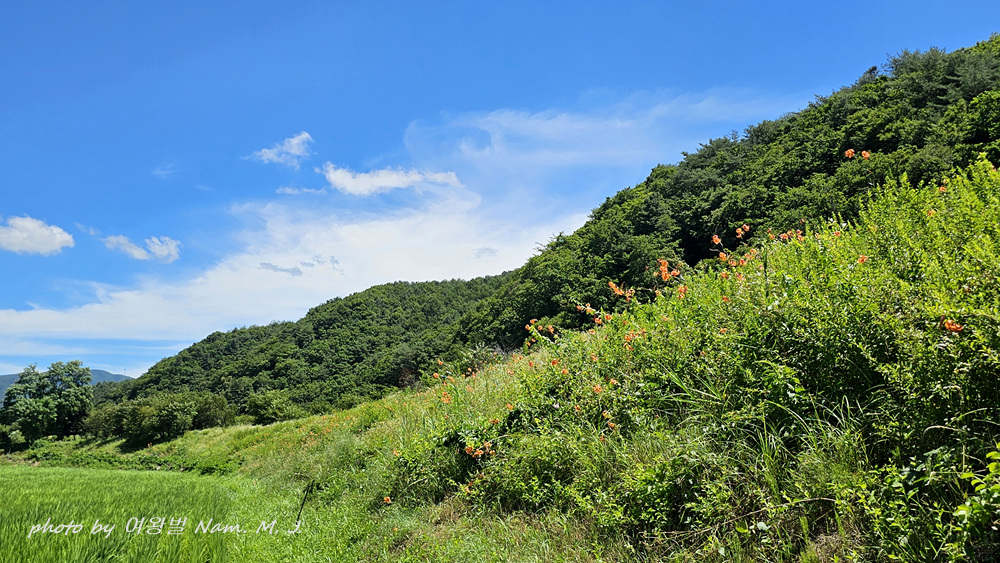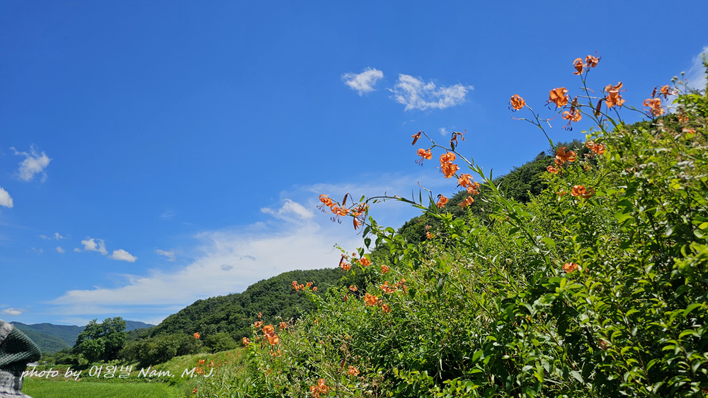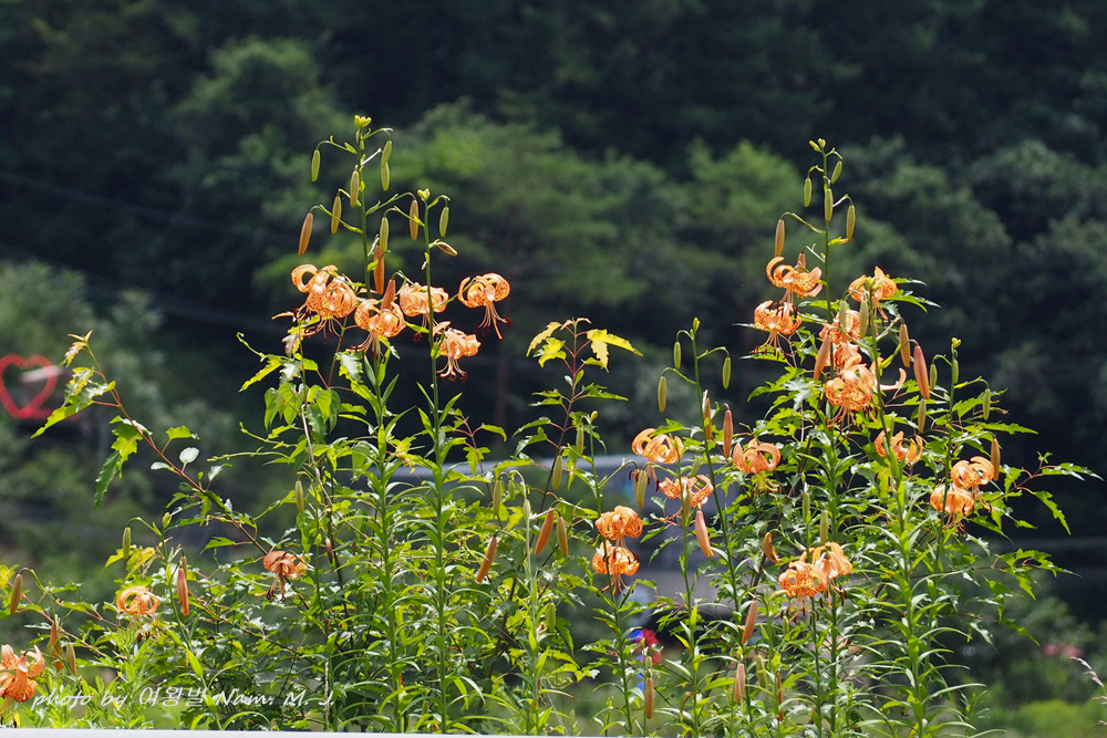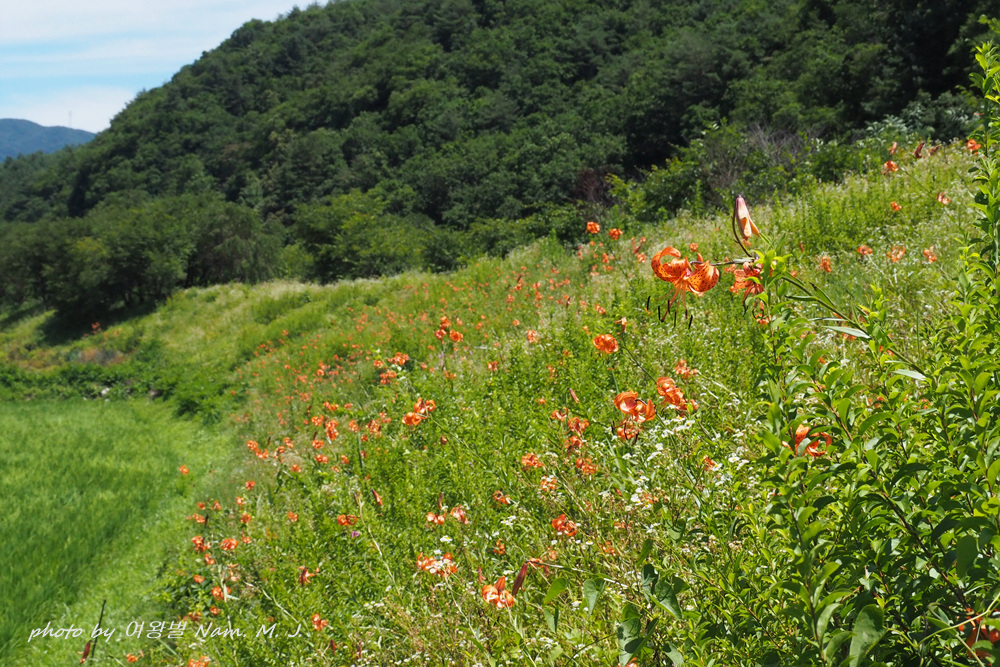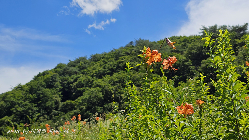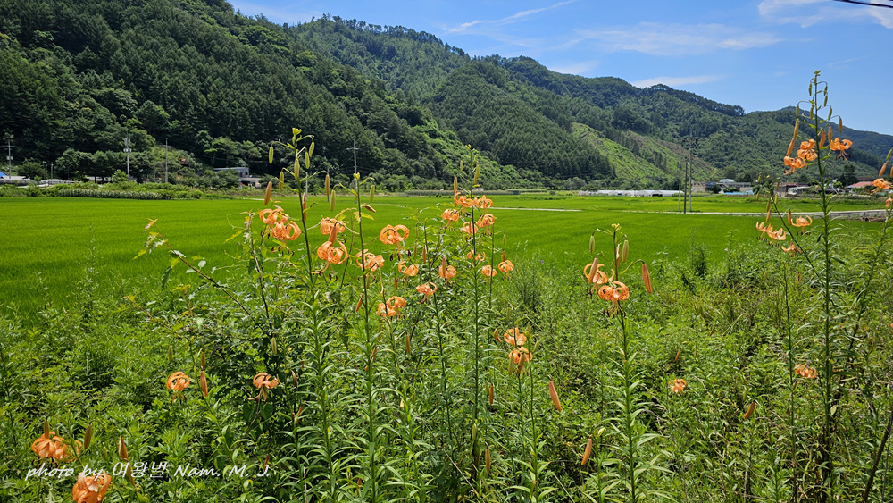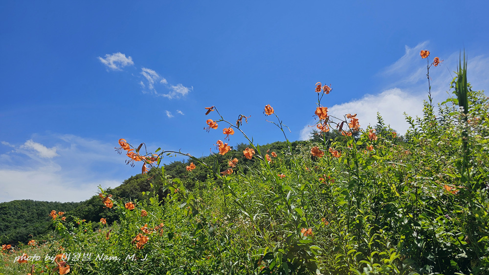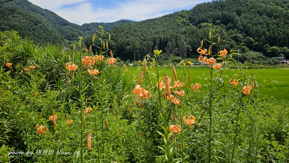꽃동무의 안내로 가는 도중에도 도로변에 군데 군데 중나리가 펴 있는 모습이 보인다.