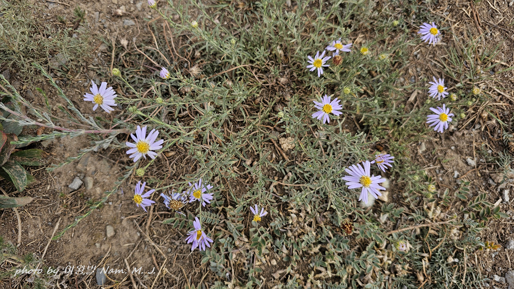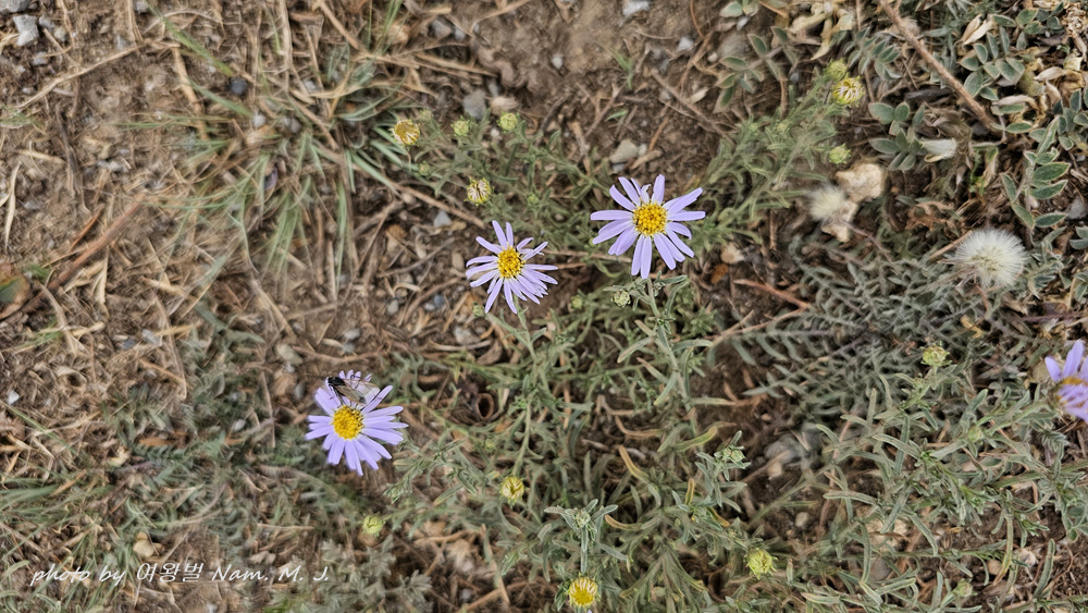 건조한 초지에 참취속 쑥부쟁이 식구가 허기진 느낌으로 꽃을 피웠다..