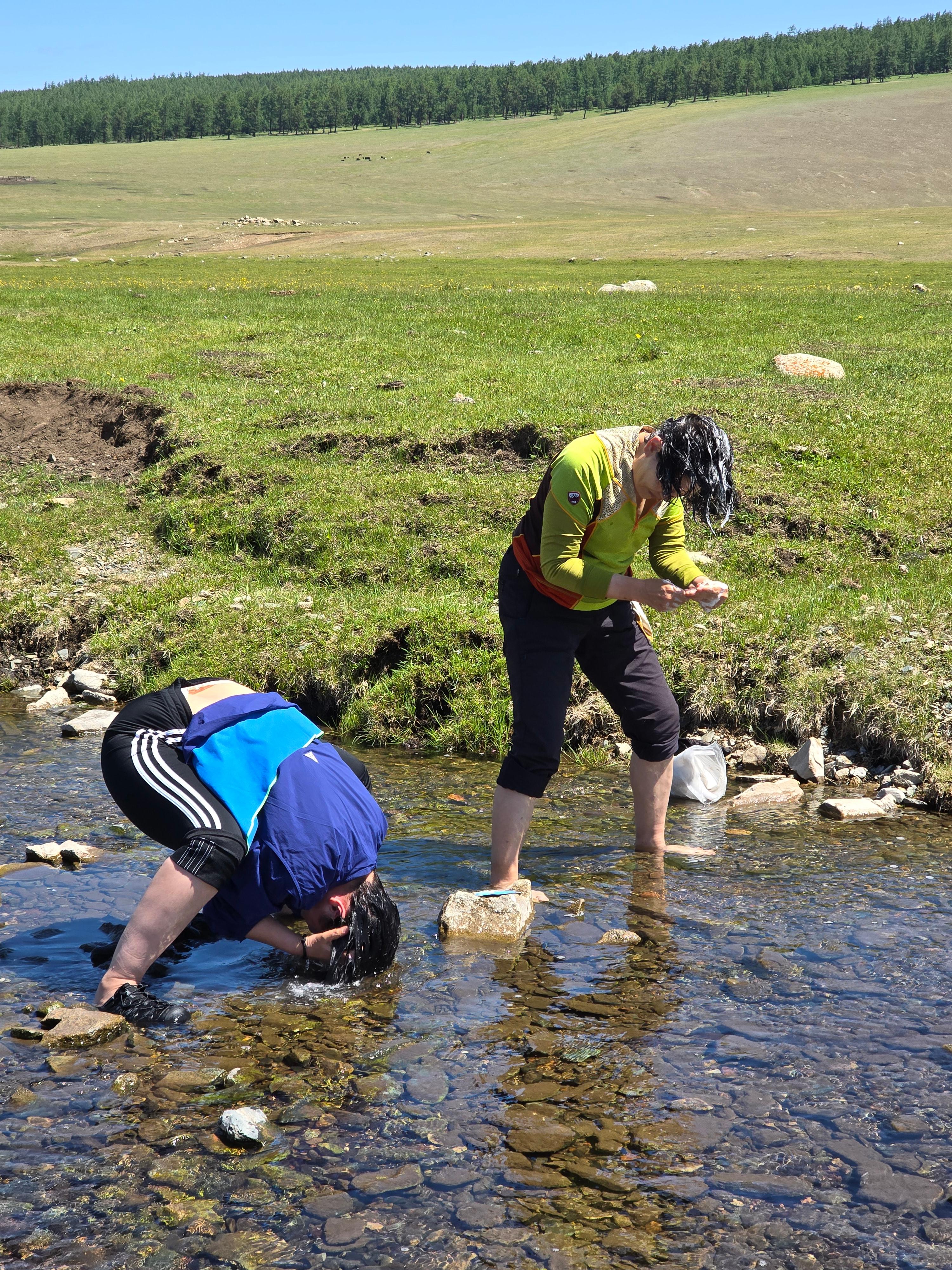 맑은 물도랑을 만나서 며칠만에 머리를 감는다.