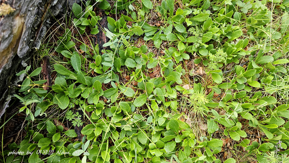 홍월귤 잎 같은데 열매는 전혀 보이지 않는다.