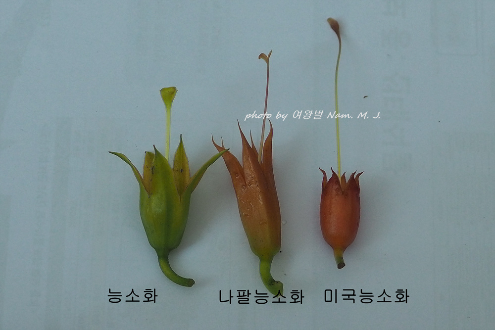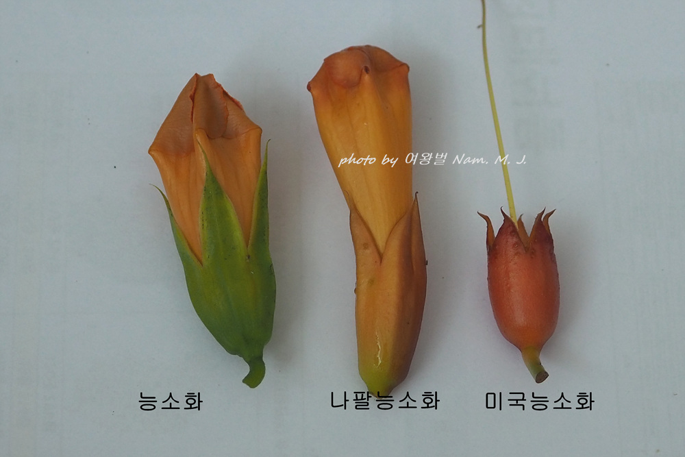 미국능소화- 화관통부가 좁고 길며 화색이 짙은 붉은색, 꽃받침은 붉은색에 열편이 짧다![]() |