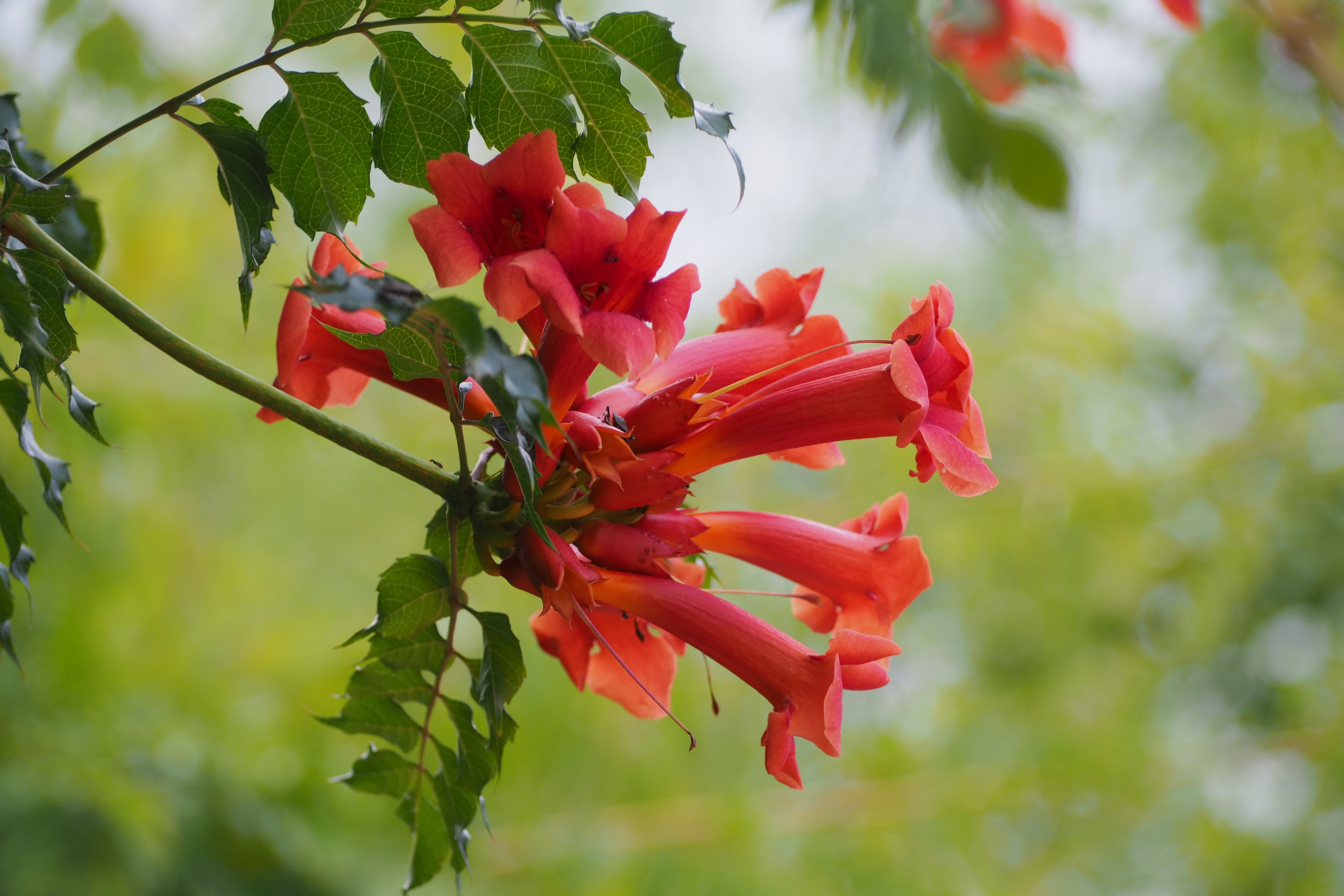 나팔능소화 - 화관 통부가 넓고 꽃이 크고 붉은색, 꽃받침이 등황색
