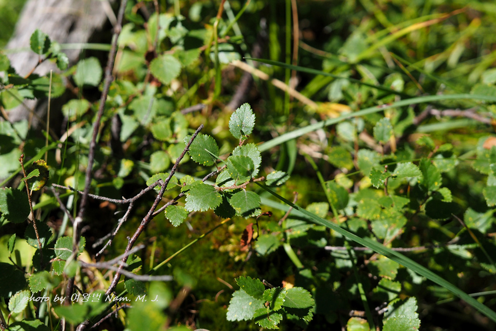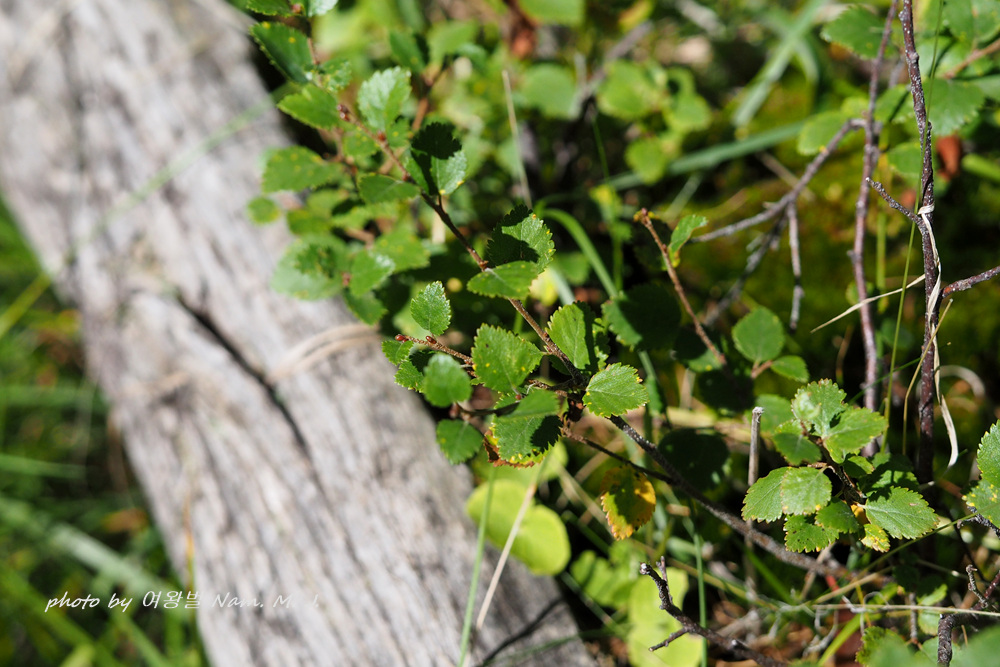 '아래 쪽이라 그런가? 왜 난쟁이 자작나무의 잎 형태가 달라지고 더 커졌는데....'