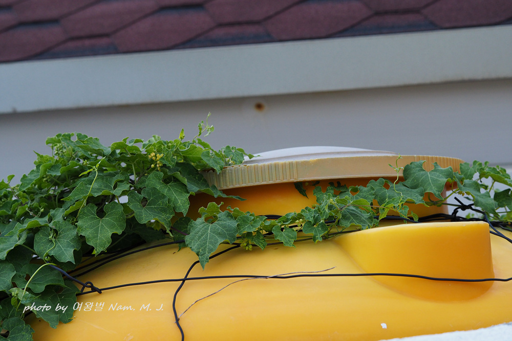 민박집 이웃 물탱크에도 녀석이 기어 올랐다.