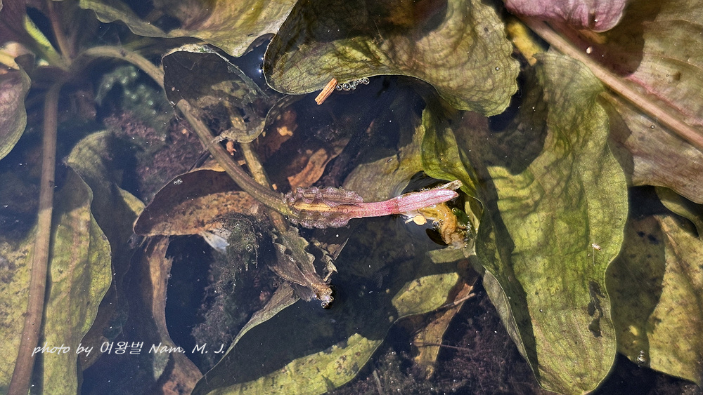 여기서 물질경이를 본 적 있는데 싶어서 수변천 풀들 사이 물통을 뒤지는데