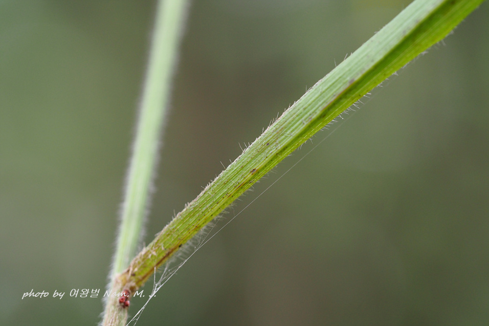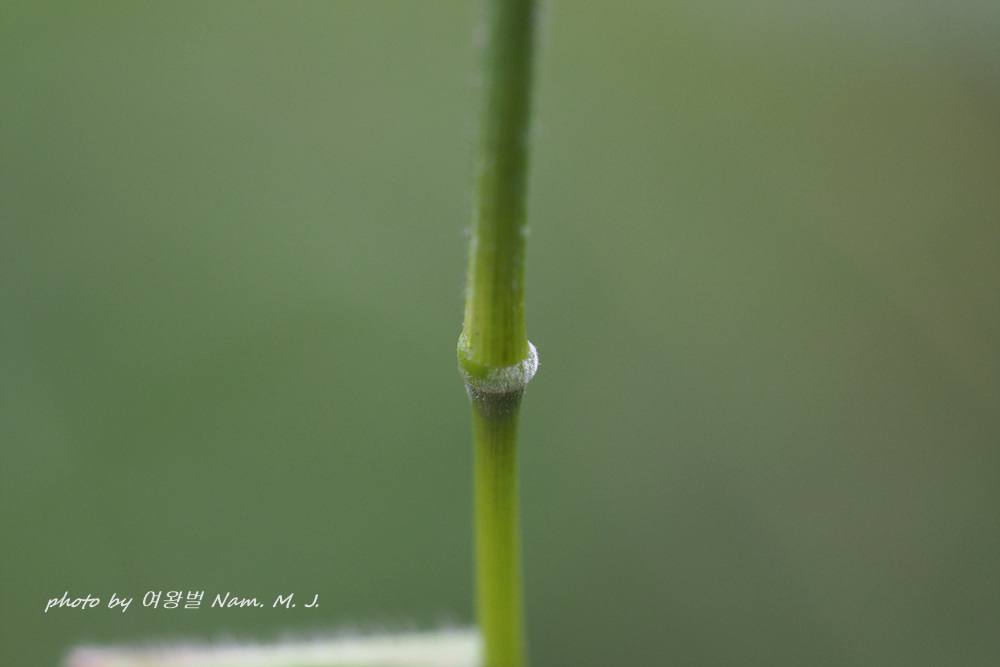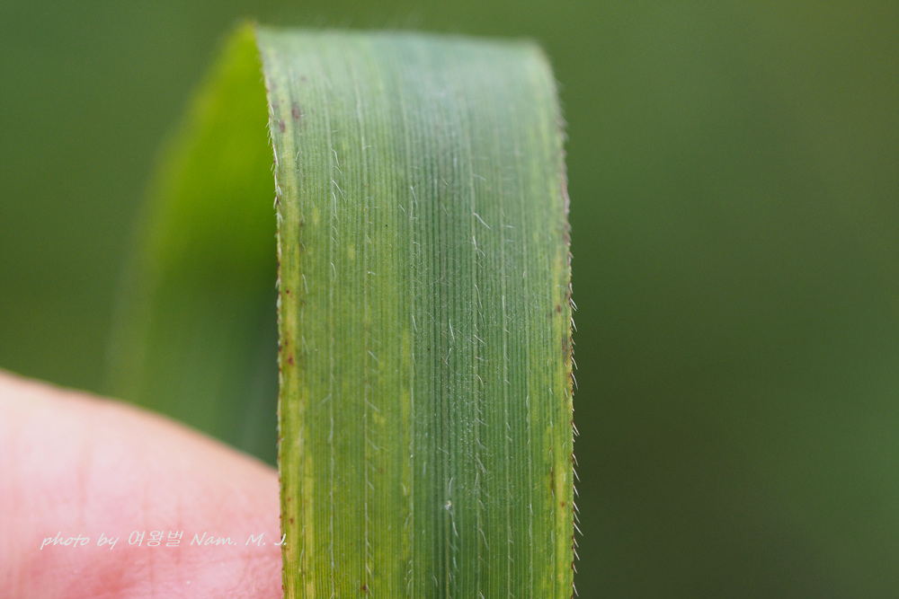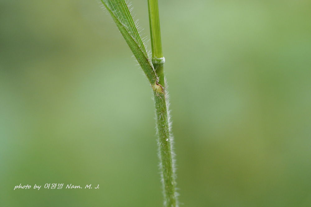 잎집은 마디 사이보다 짧고, 긴 털이 있다. 잎혀는 1~2mm이다