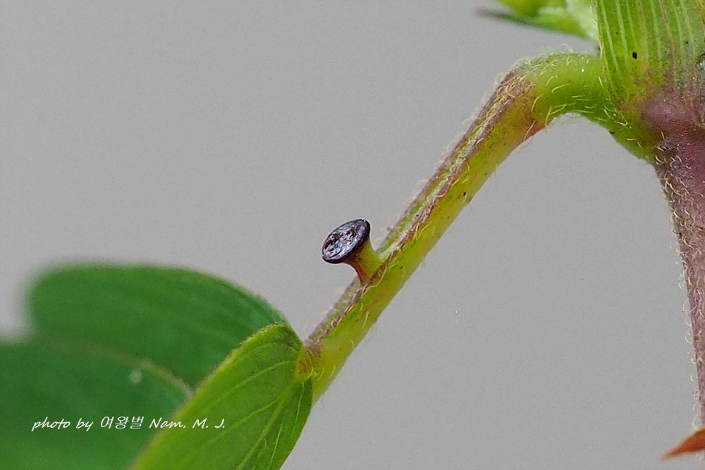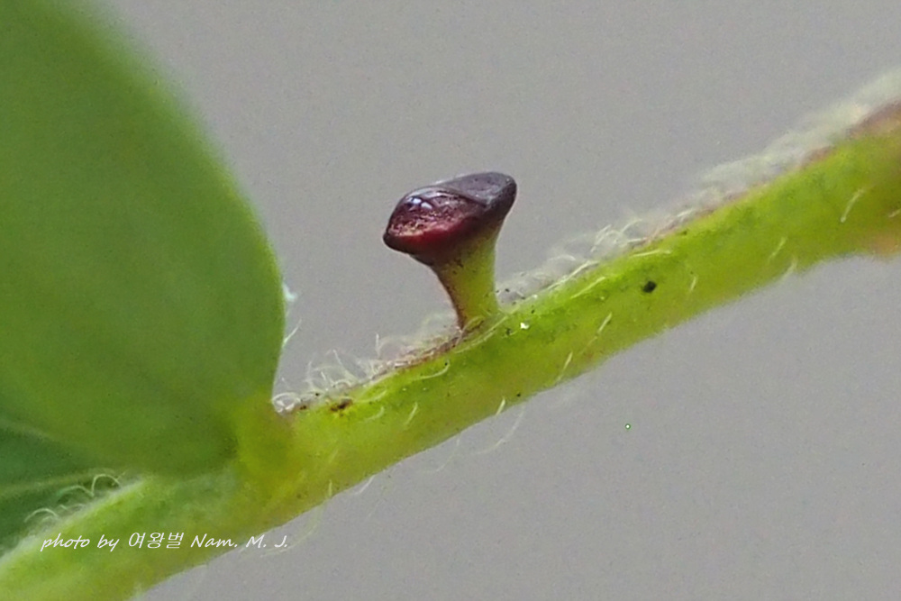 꿀샘의 자루가 확실하게 발달하여 있고, 꿀(?)이 가득 만들어졌다.