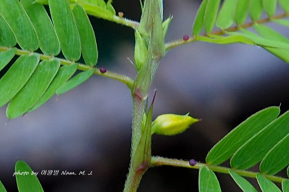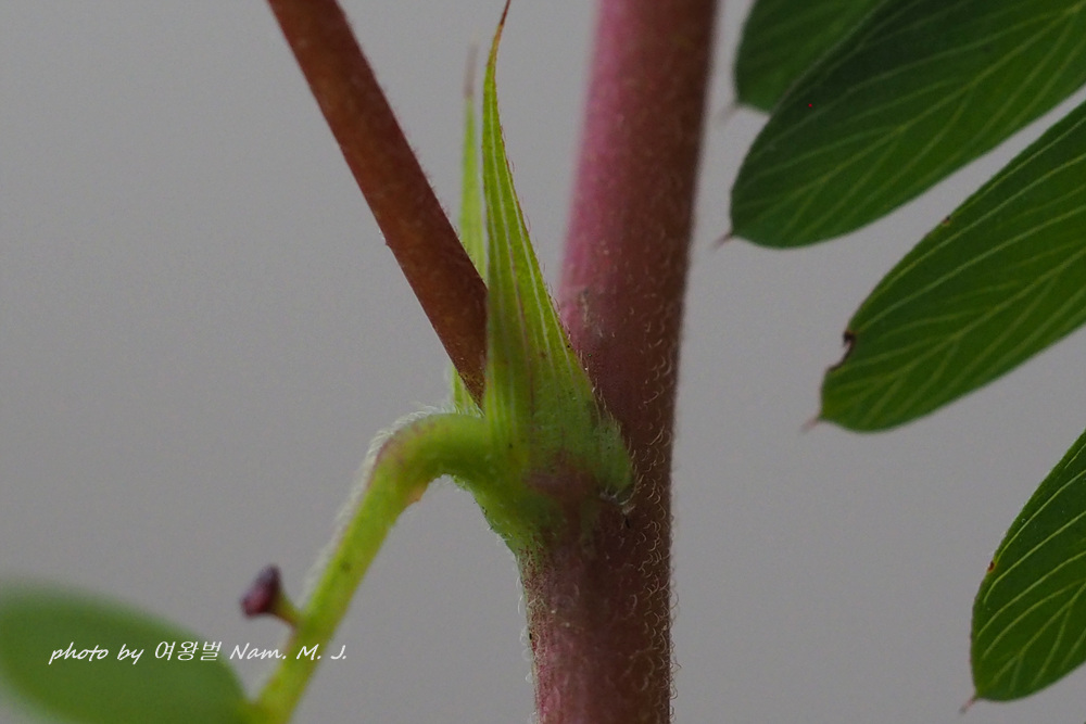 차풀처럼 잎자루에 꿀샘이 있는데 꿀샘에 자루가 뚜렷하게 발달하여 있다.