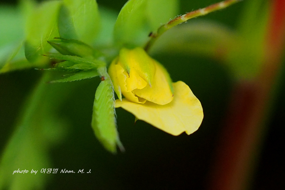 아래 꽃잎 하나가 유난히 크다. 그래서 큰꽃잎차풀이란 이름을 얻었다.