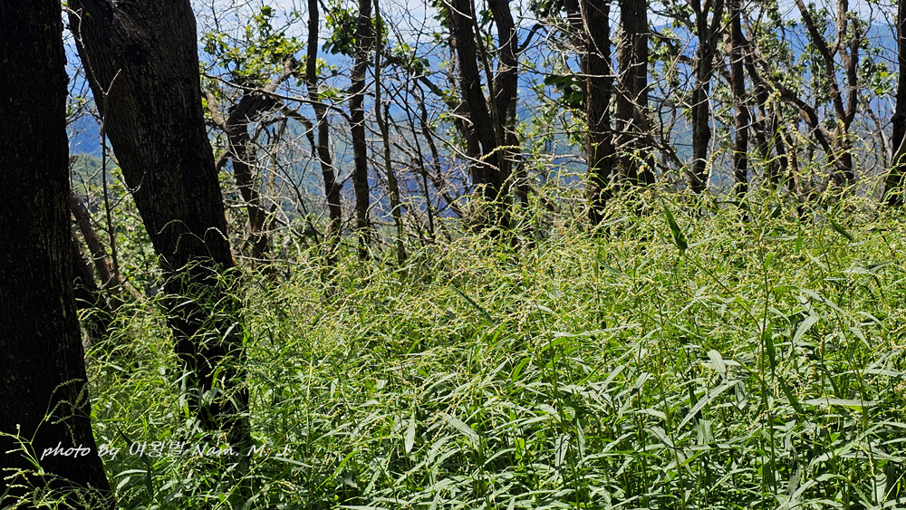 이 곳 역시 산불이 지나갔는데 검게 탄 나무 아래 큰끈끈이여뀌가 완전 점령하였다.