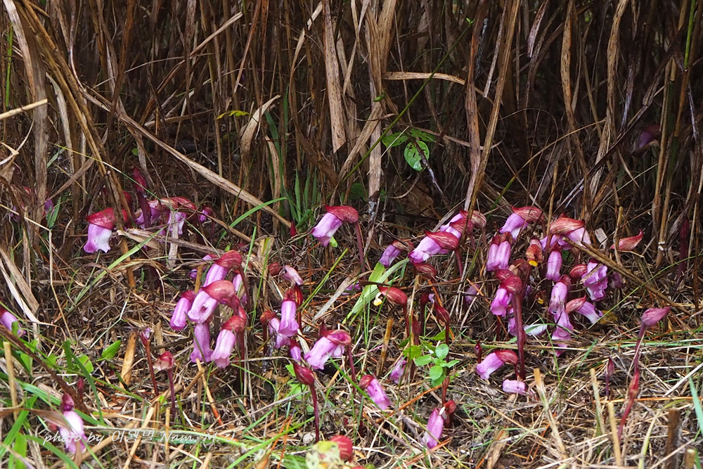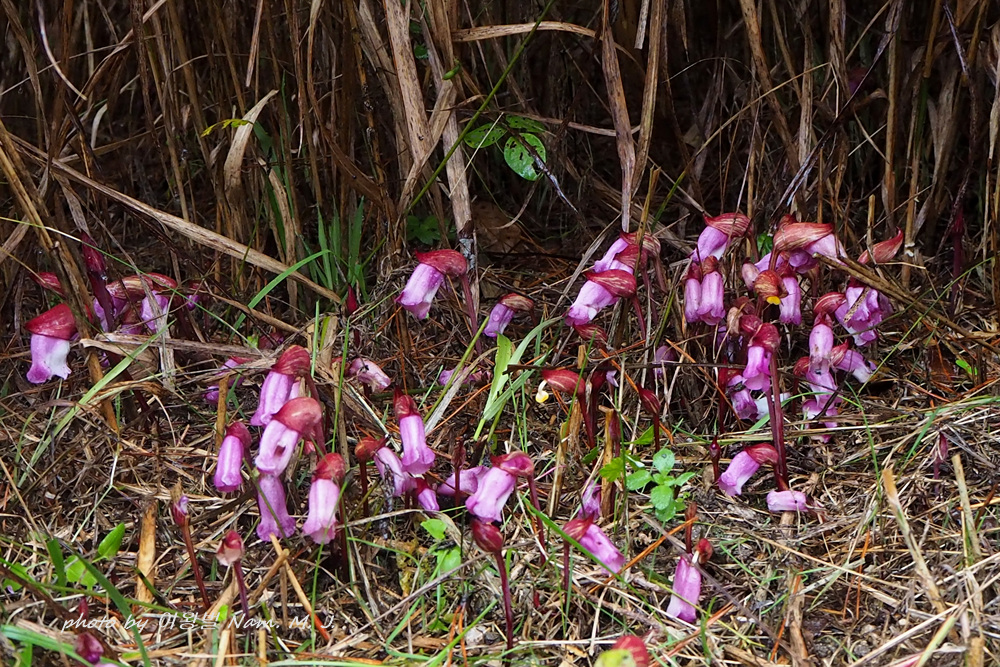 잣나무 촬영 때문에 산책길 나섰다가 야고 무리에 깜짝 놀랐다.