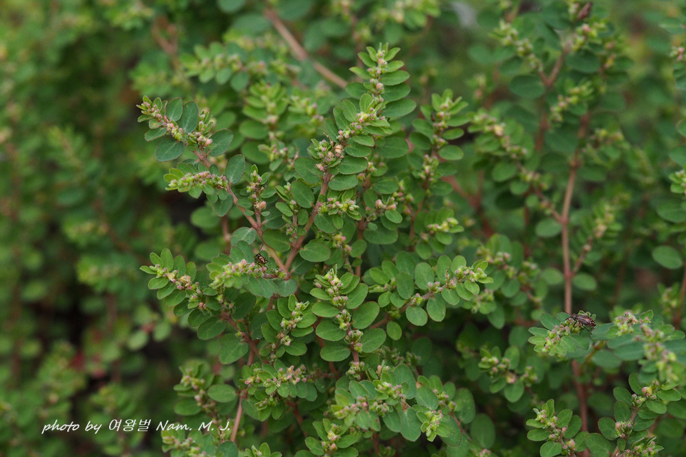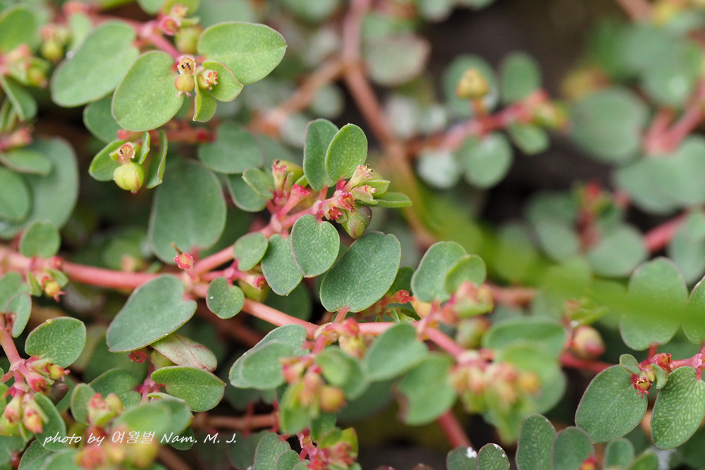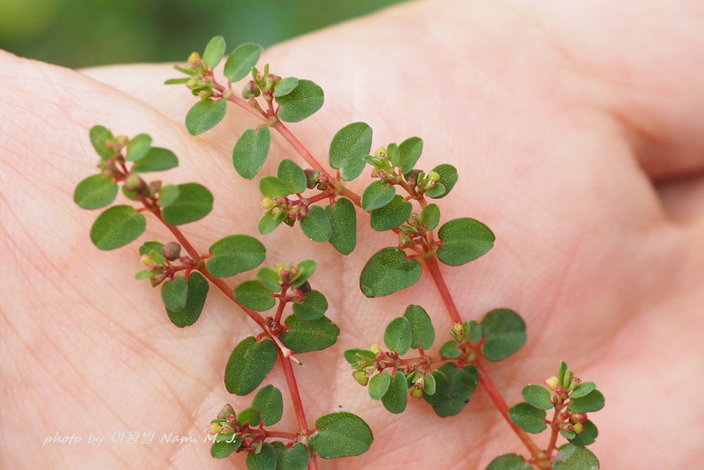 동글동글한 잎이 누운땅빈대와 유사하지만 크기가 아주 작고 전초에 털이 없다.