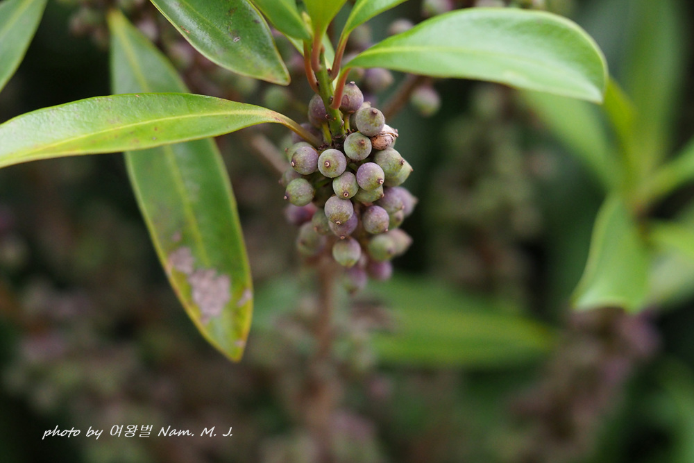 한국에도 작년에 자생이 보고된 사철검은재나무도 여러 번 나타났는데 열매가 검게 잘 익어서 대박이었다.
