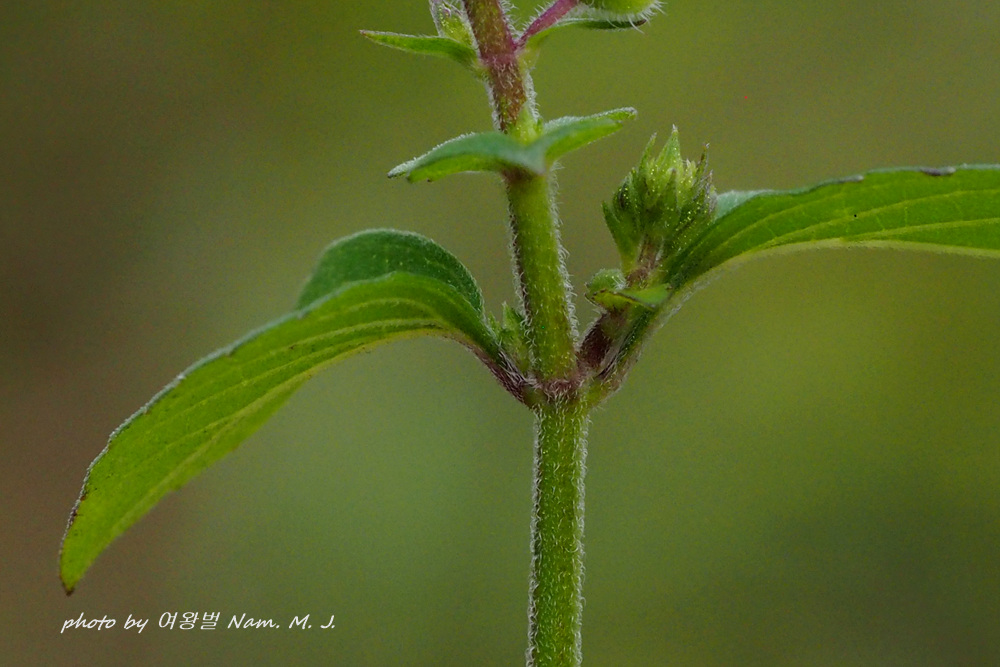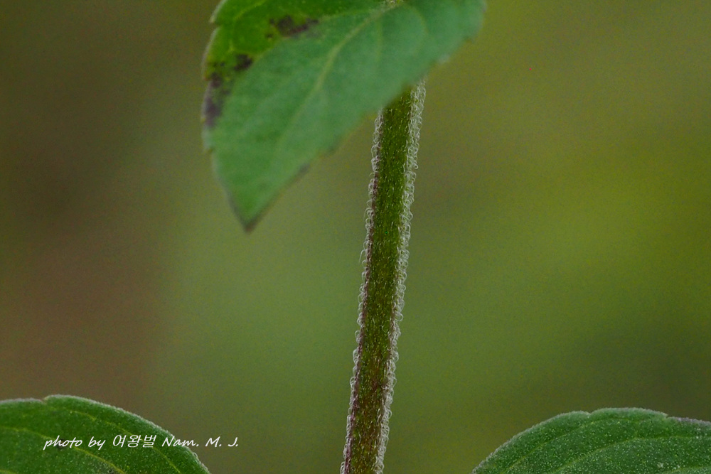 난형, 넓은 난형 톱니 크고 4~7쌍 털이 없거나 표면에 누운 털 화서 아래 마지막 잎의 잎자루가 길다 |