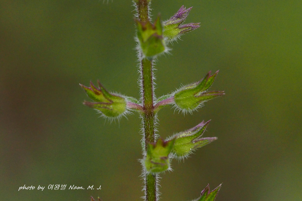 줄기 능상에 아래를 향한 짧은털, 화서에는 털이 없다 |