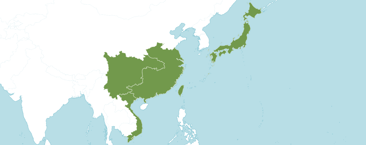 원산지는 중국 중남부, 남동부, 베트남, 대만, 중남 및 일본까지다. 주로 아열대 생물 군계에서 자란다.