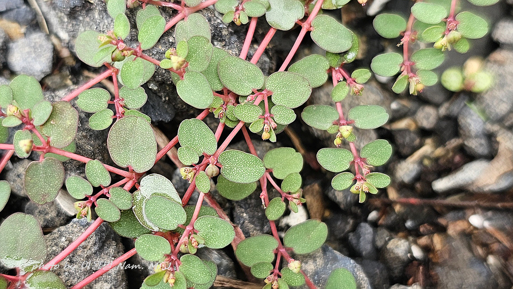 전초에 붉은기운이 강하고 잎이 누운땅빈대나 애기땅빈대보다 더 작다.