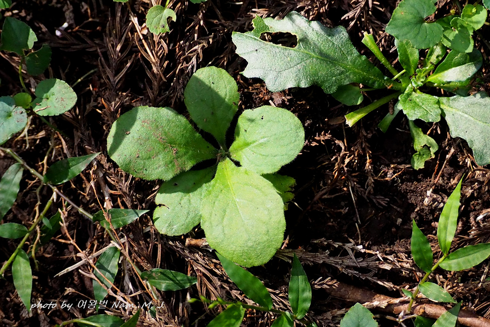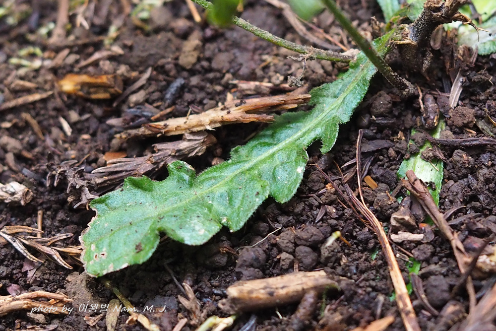 천일담배풀과 함께 개화 시에도 근생엽이 남아 있고 방석처럼 퍼지는 뿌리잎을 가지고 있다.