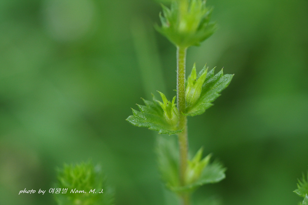 잎과 줄기 꽃받침에 선모가 안 보이고 짧은털만 보인다.