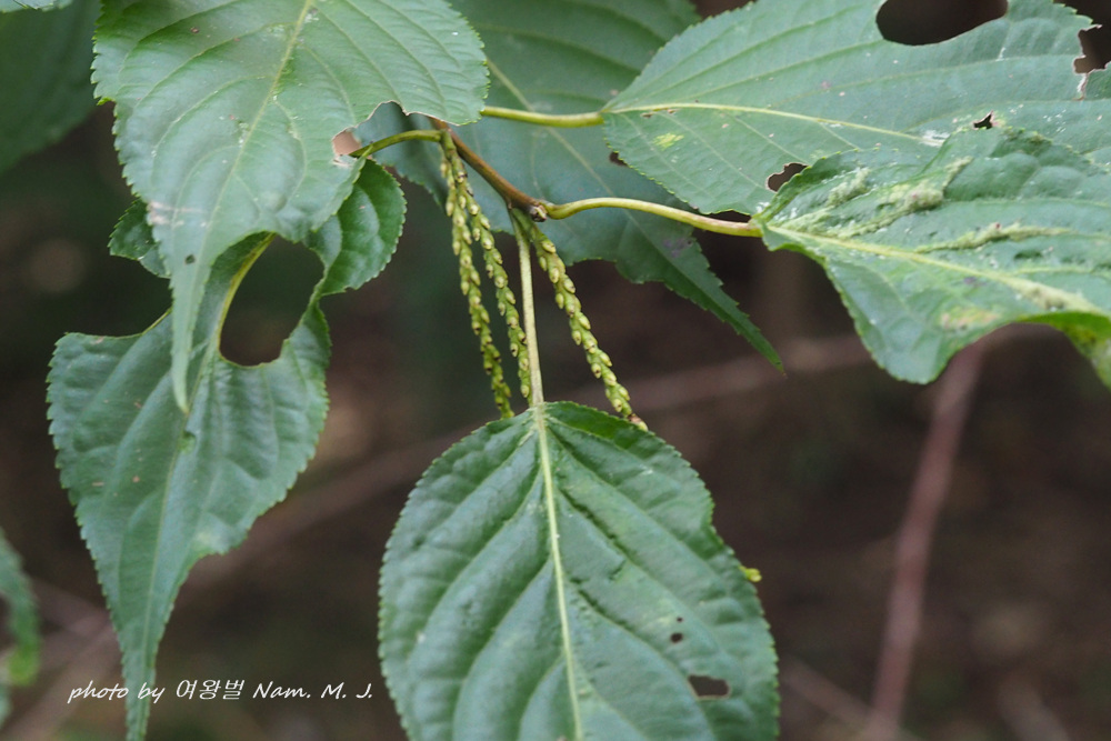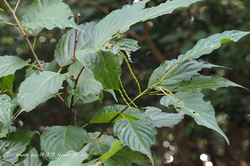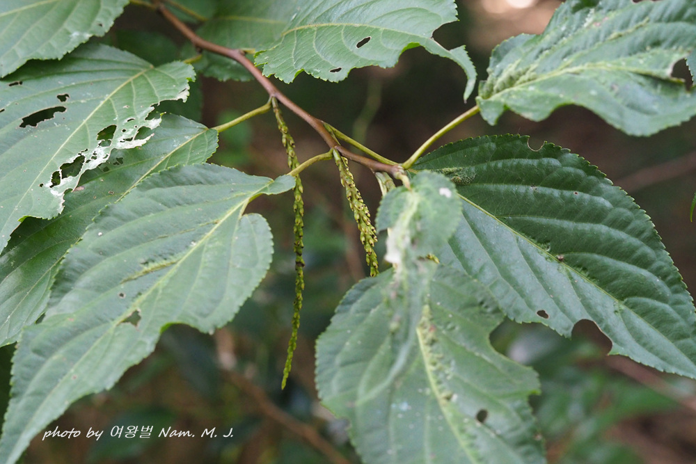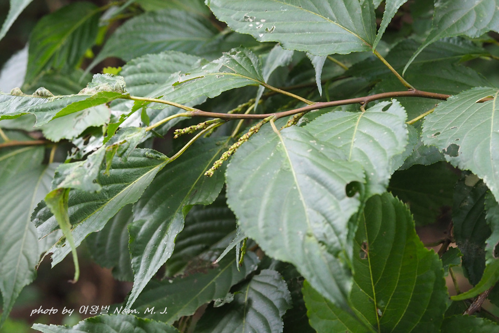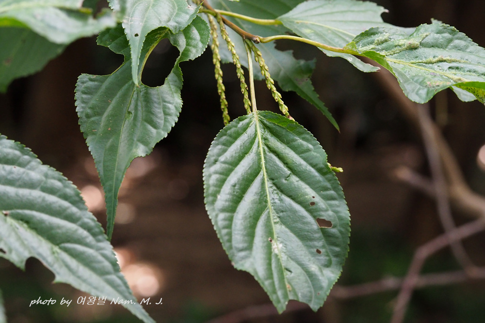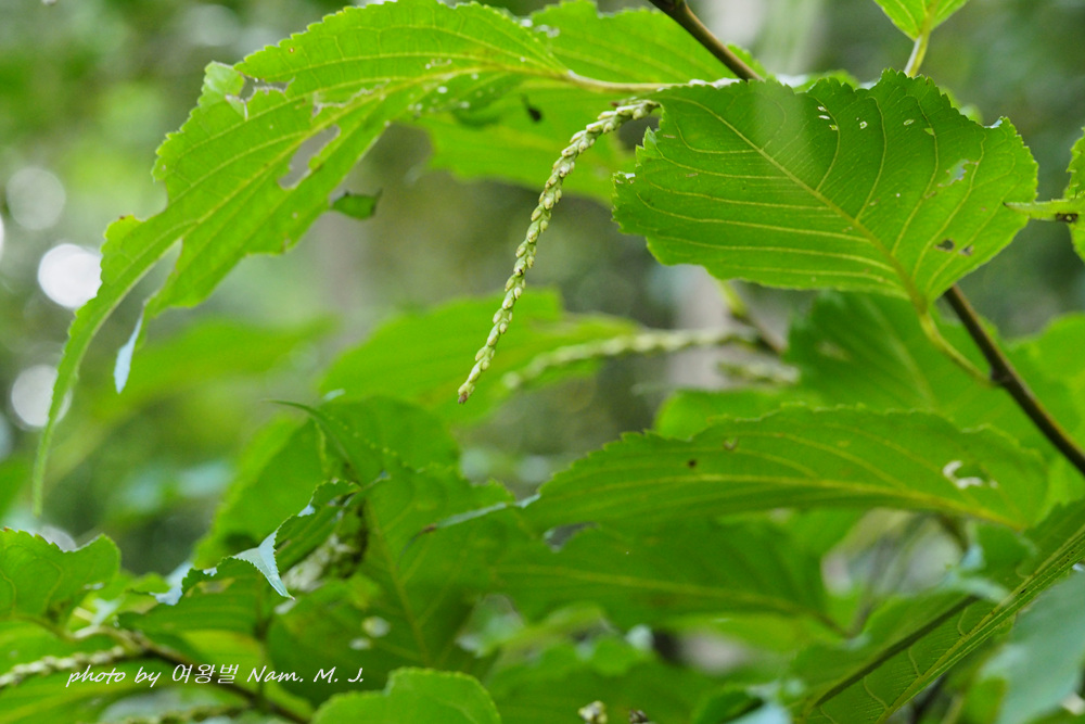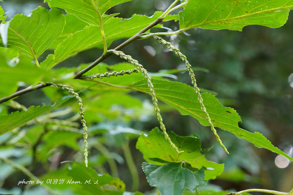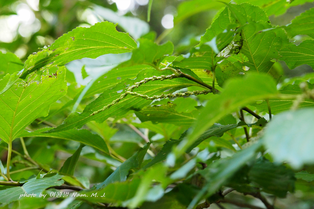 실처럼 긴 이삭화서는 수꽃화서로 내년 봄에 필 꽃봉오리다.