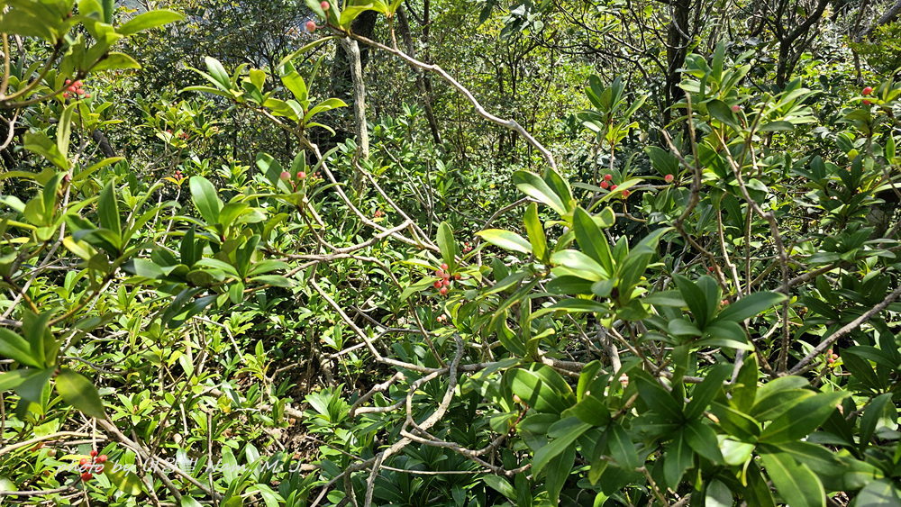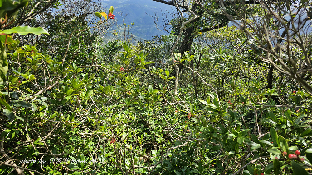 바위산 정상부에서 만난 국내에서 보지 못한 상록관목 열매다.