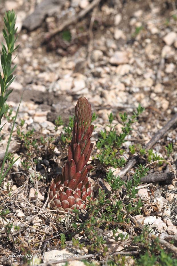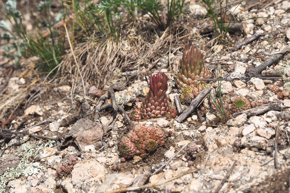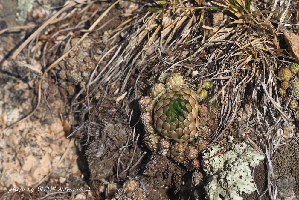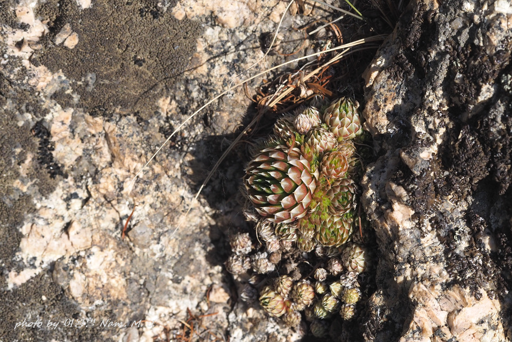 건조한 바위 위에 다닥다닥 붙어 있는 잎새바위솔이 6월인데 벌써 꽃대를 올렸다