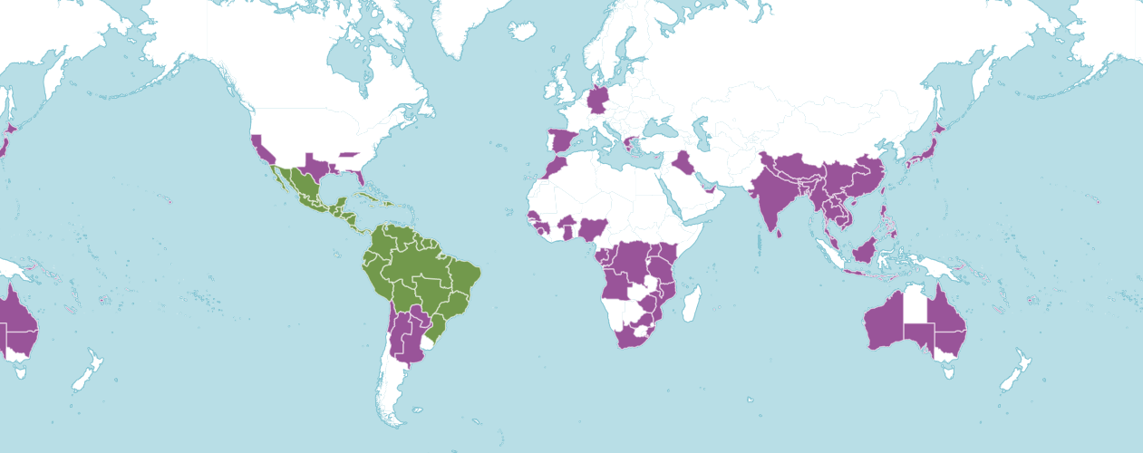 원산지는 멕시코에서 열대 아메리카까지의 아관목이며 주로 계절적으로 건조한 열대 생물군계에서 자란다.