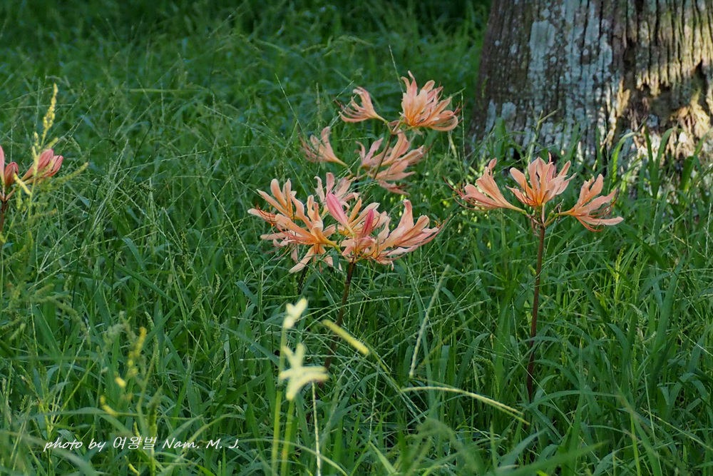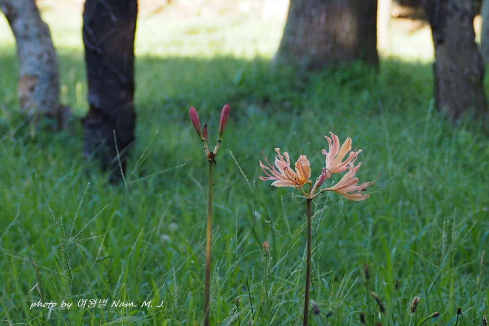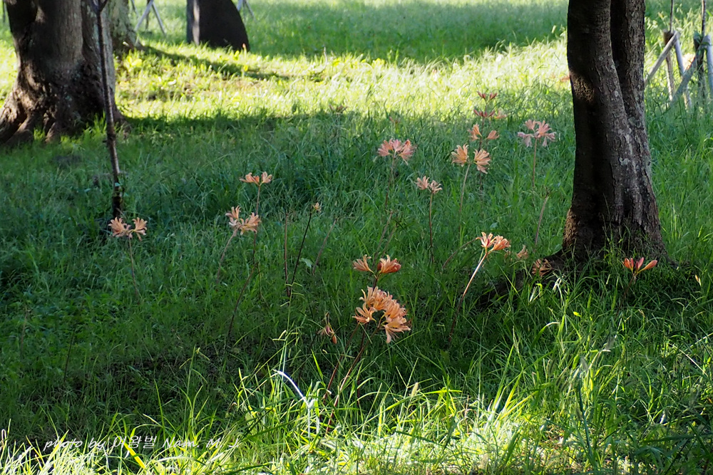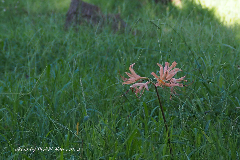 공원 숲 아래서 오랜만에 만나는 제주상사화.