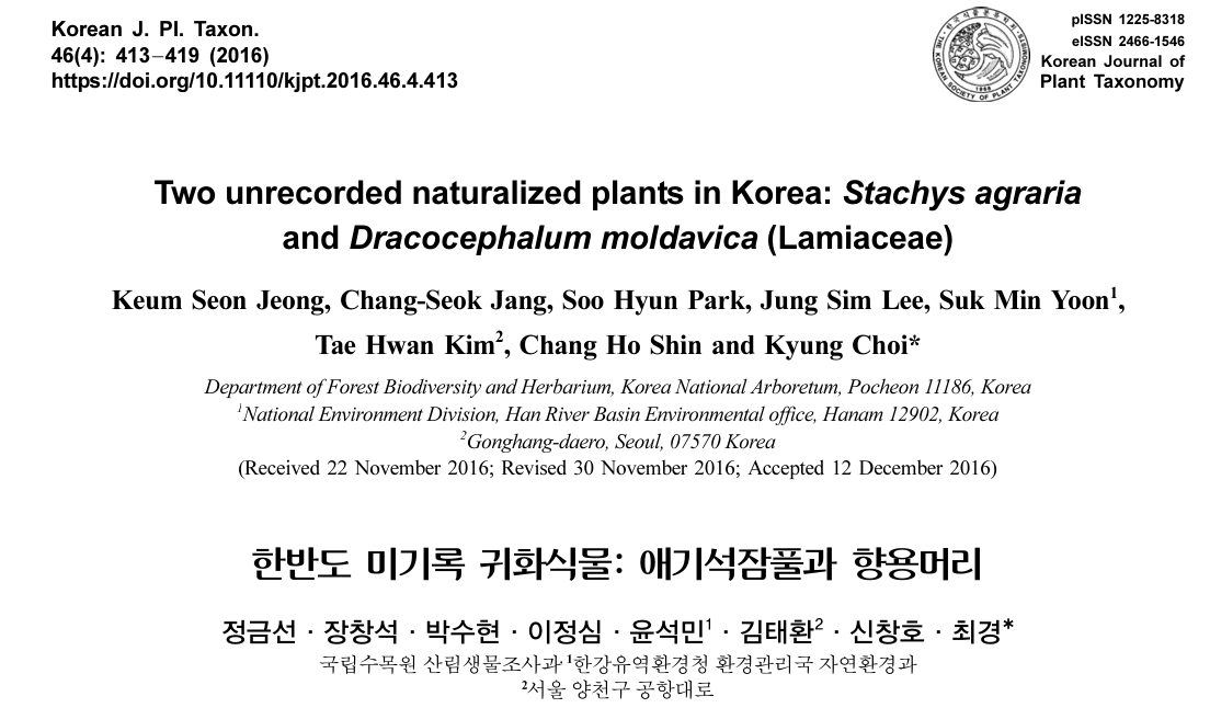 국가표준목록에 용머리속에 2016년 미기록식물로 보고된 향용머리 Dracocephalum moldavica L.란 녀석이 있는데