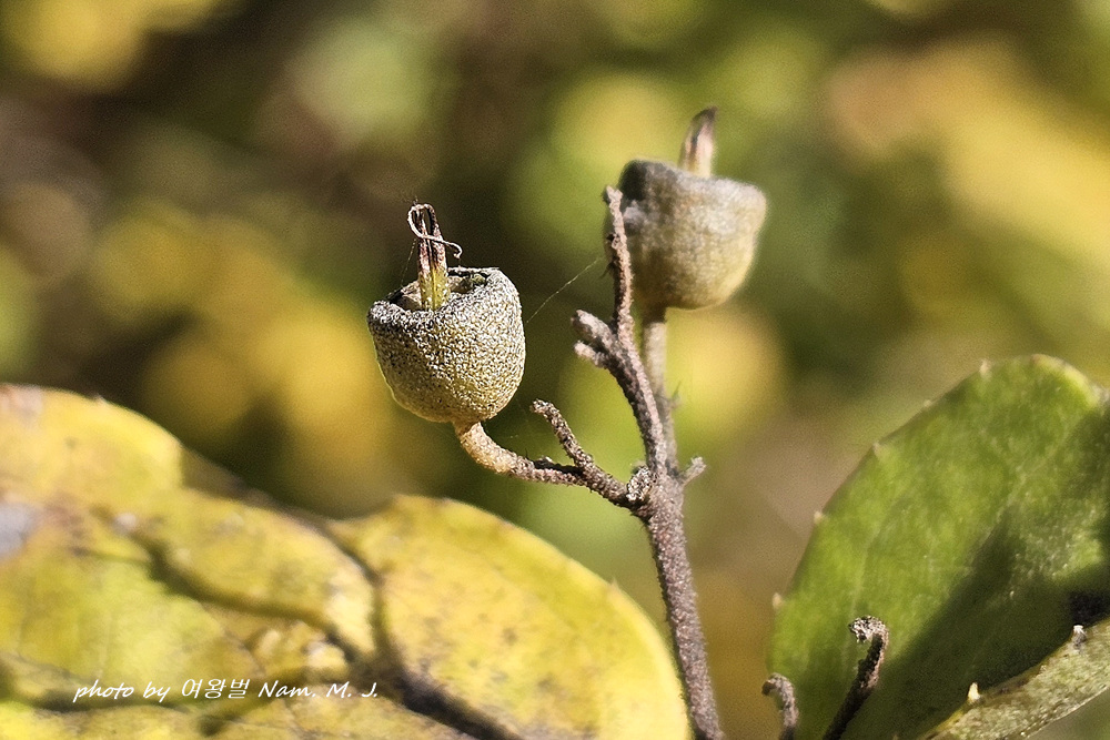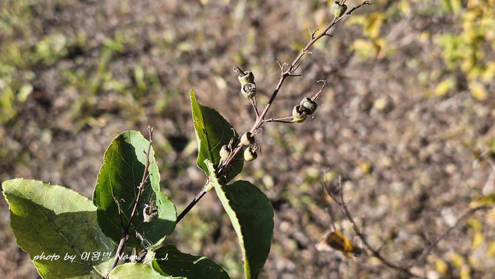 대마도에서 만난 둥근말발도리 정체를 찾는다고 수변천에 심어 둔 이 녀석 열매를 촬영했는데