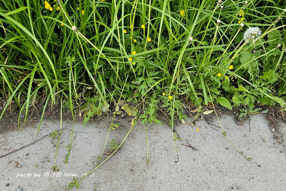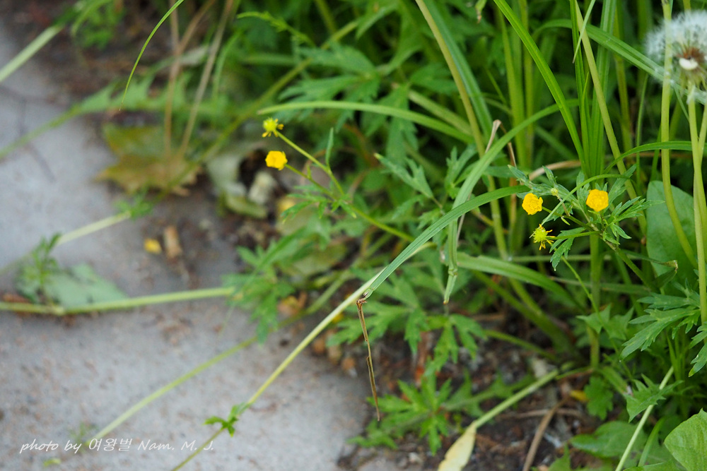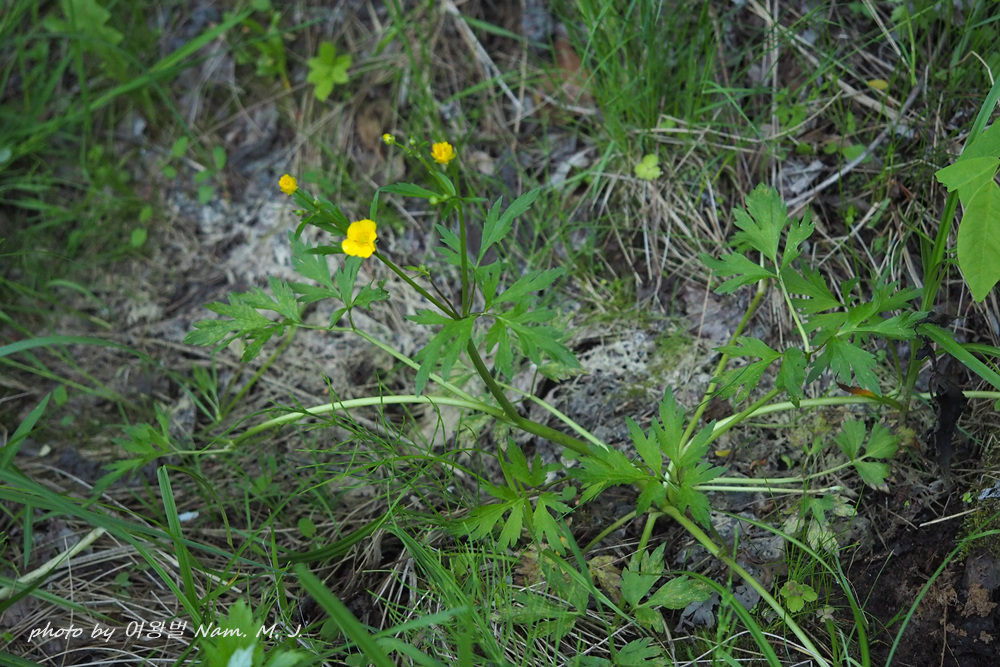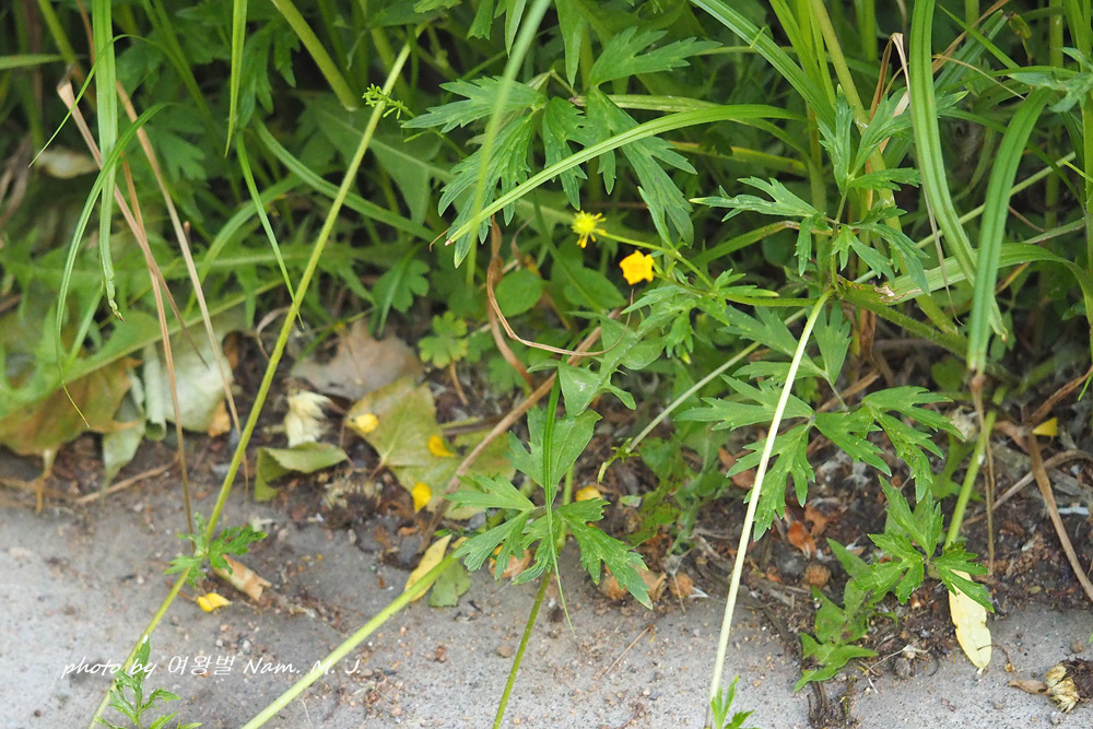 여기서 본 이 녀석은 기는미나리아재비보다 잎이 더 크고 열편이 좁고 길게 뾰족하다,