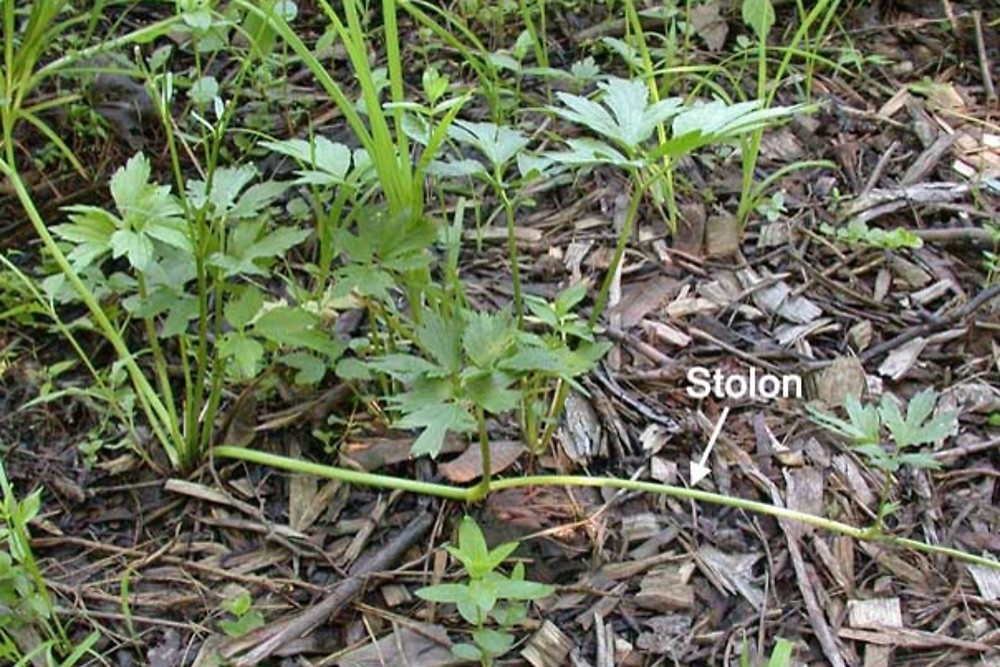 줄기는 기는미나리아재비처럼 길게 포복하여 자라면서 마디에서 뿌리를 내린다.