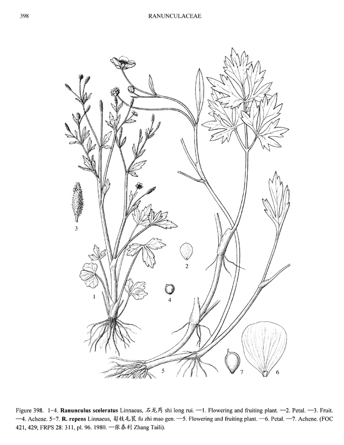 기는미나리아재비 Ranunculus repens 는 아래 삽화의 3~7번 그림이다.