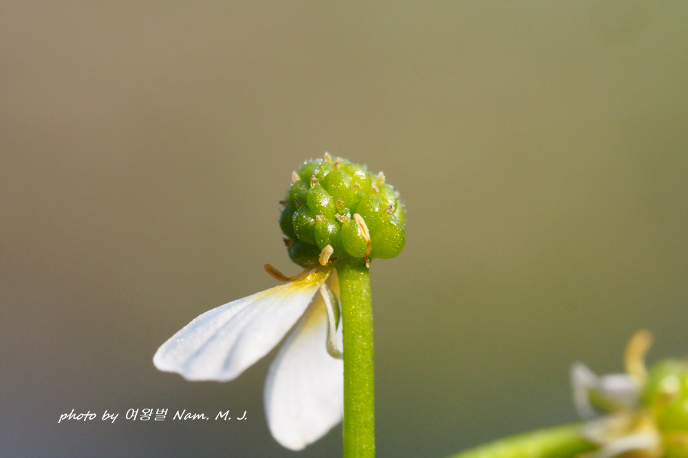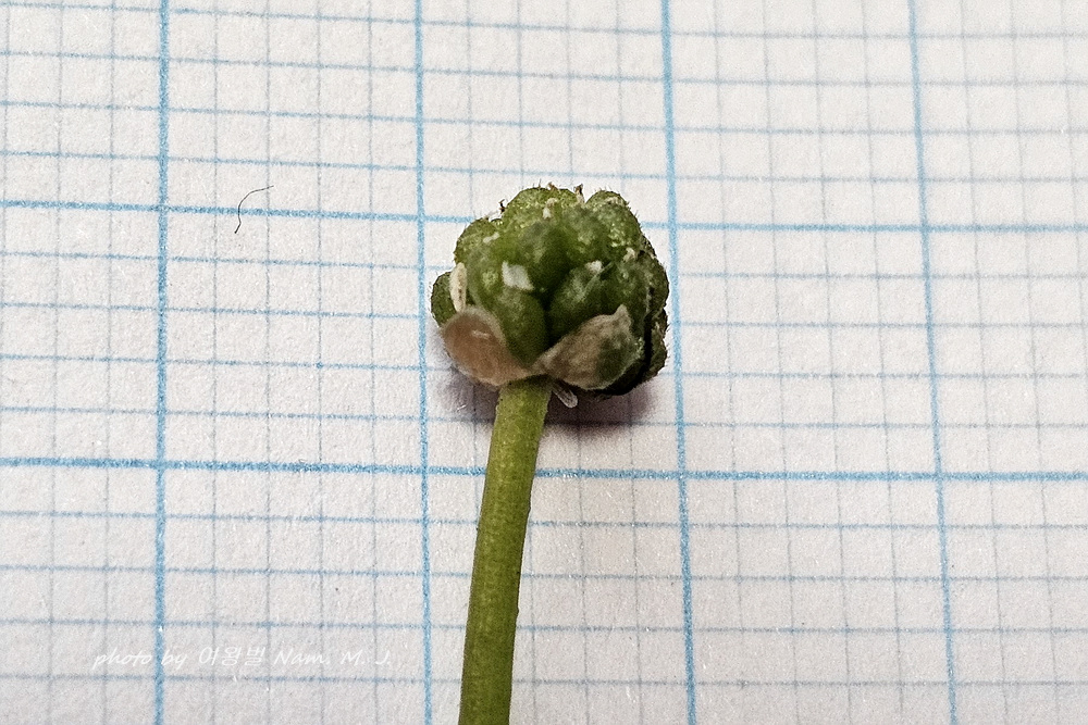 ▶민매화마름 (Ranunculus yezoensis) : 꽃턱과 수과 및 탁엽에 처음부터 털이 없다.