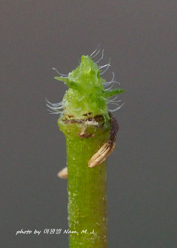 수과, 화탁, 엽초에 털이 확인이 된 너를 매화마름으로 방망이 두드린다.