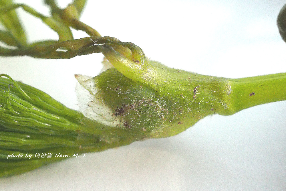 마지막으로 탁엽(엽초)의 털을 확인해야 하는데 현장에서 확인하지 못하고