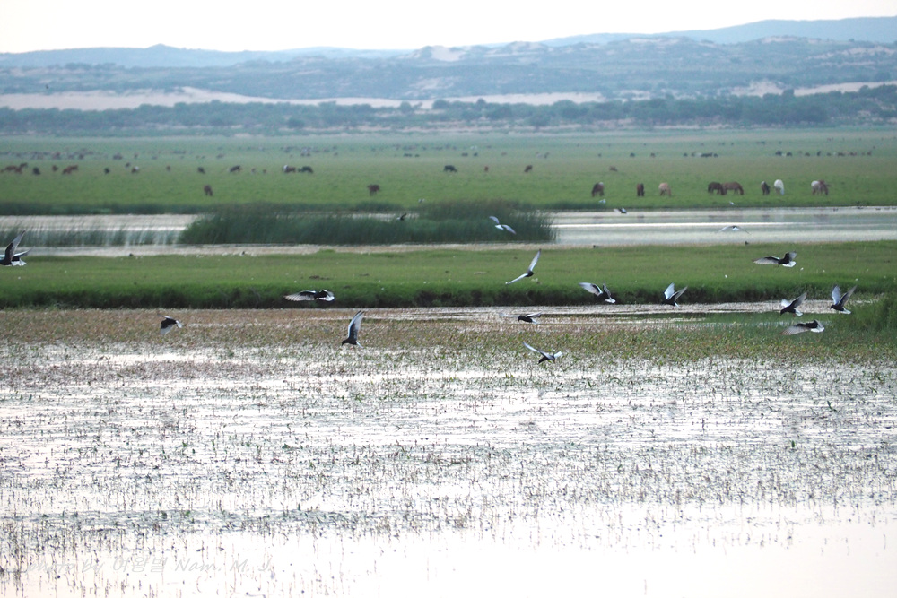 새 떼들이 수면 위를 비행하는 울음소리는 장관이었다.