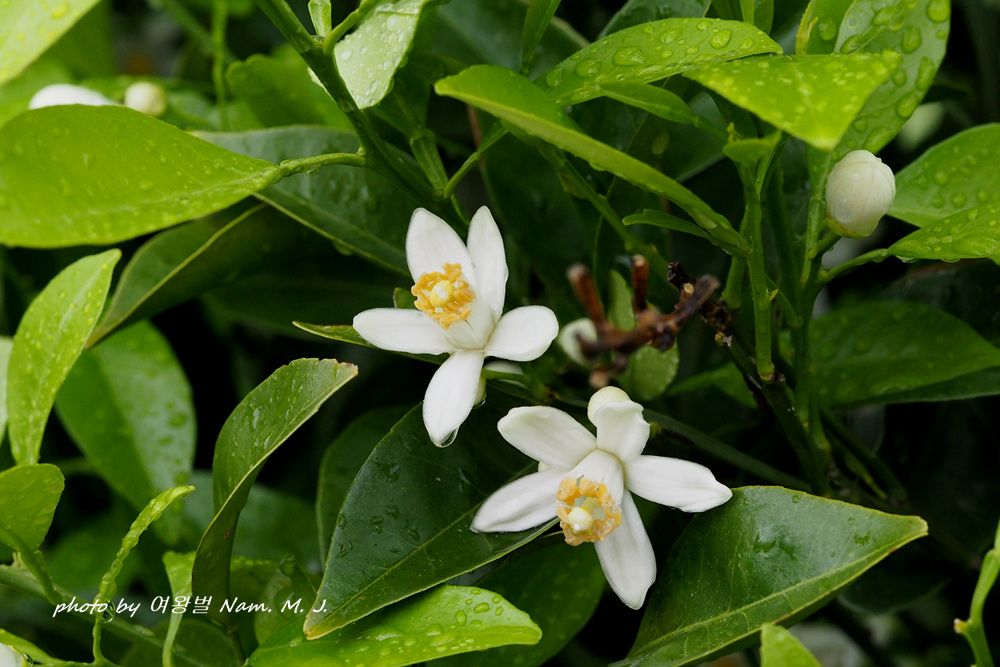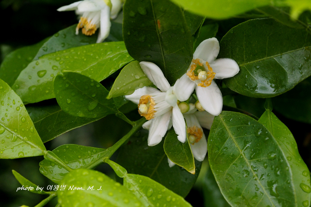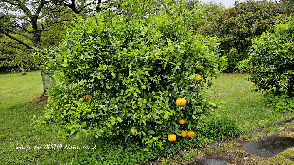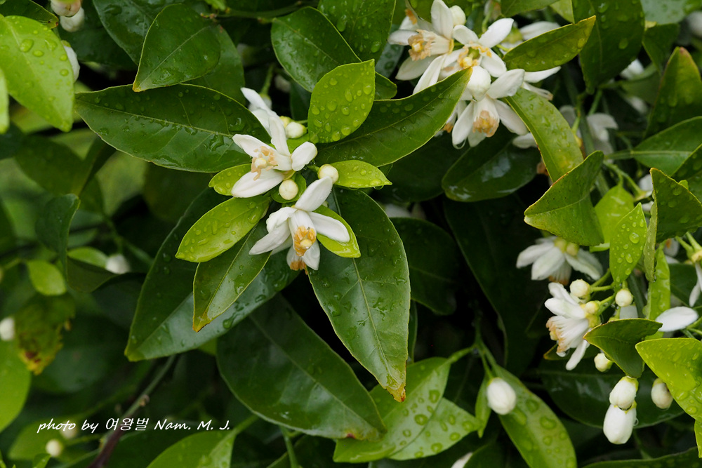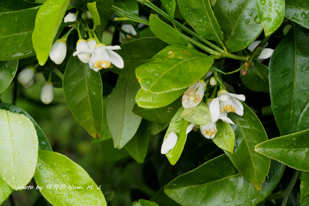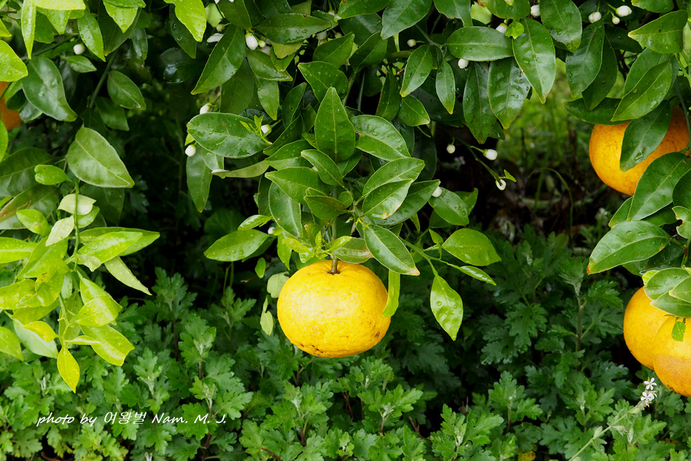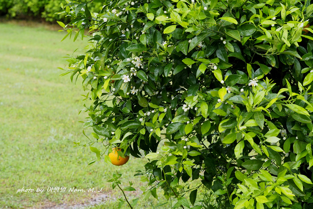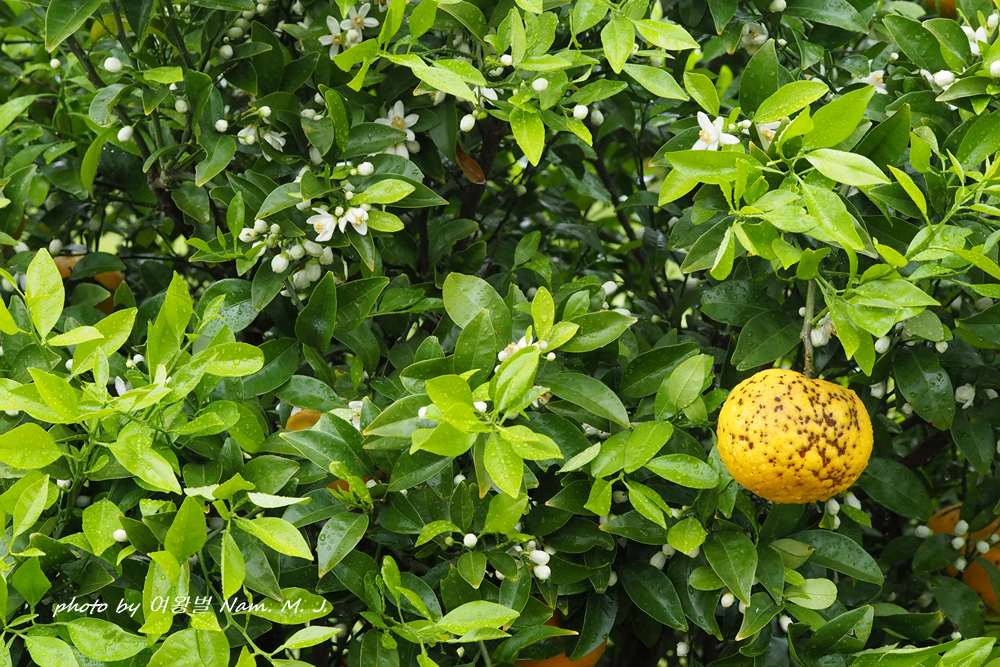비내리는 제주. 잠시 뜸 한 사이 찾은 곳에 하귤이 꽃을 피우고 있다.