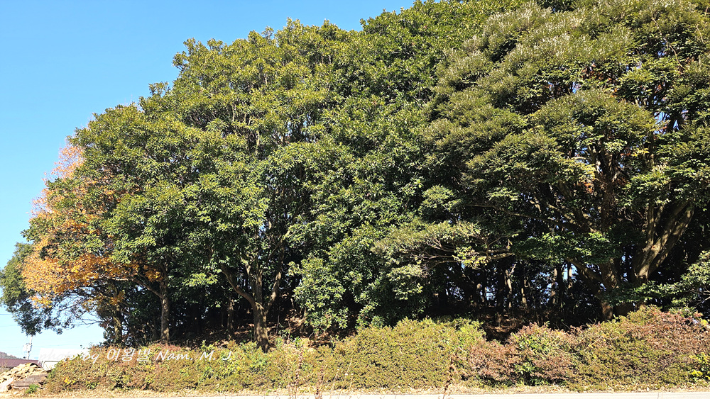 수령이 오래된 상록의 참가시나무는 아직도 짙은 녹색이 바람에 흔들리는데
