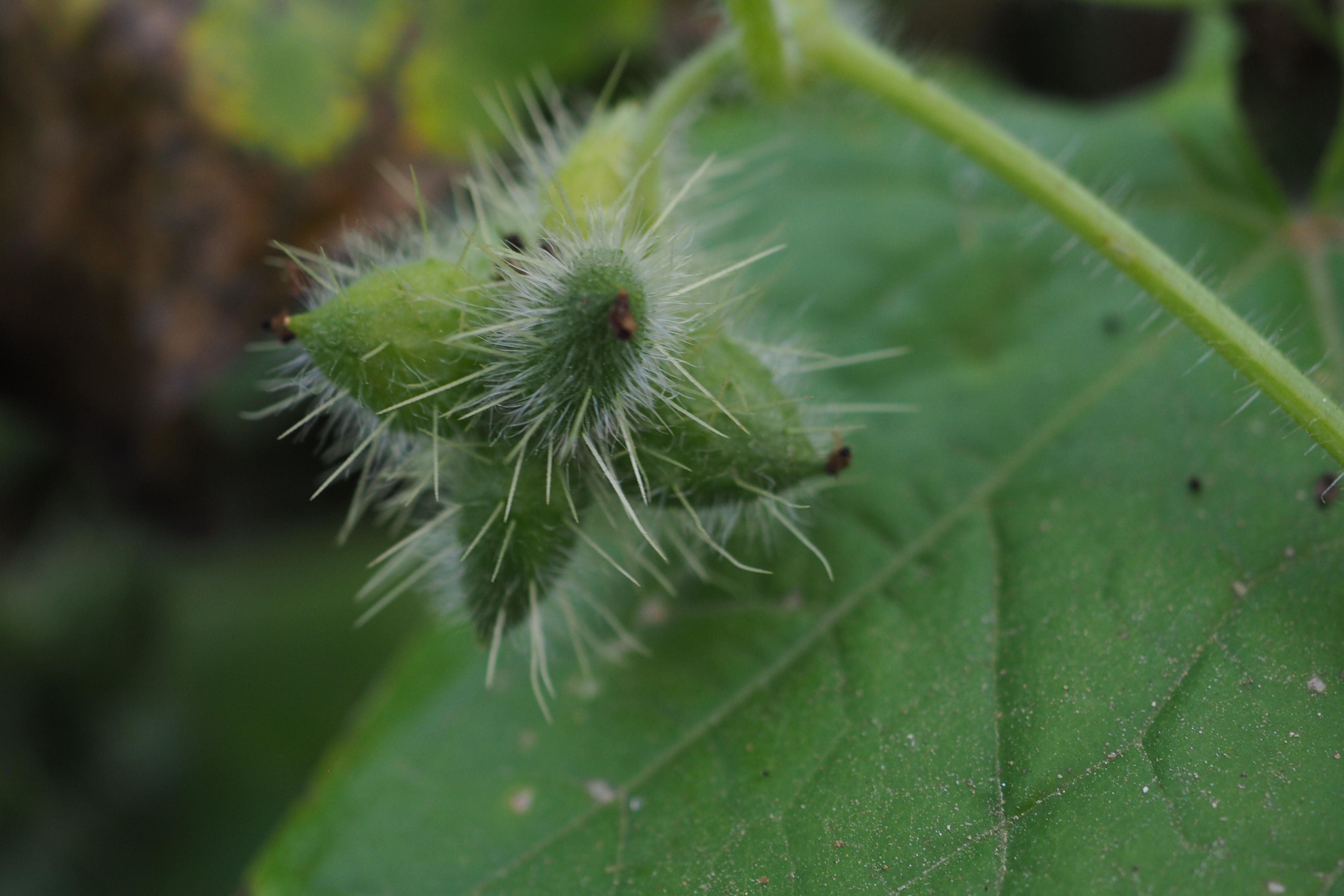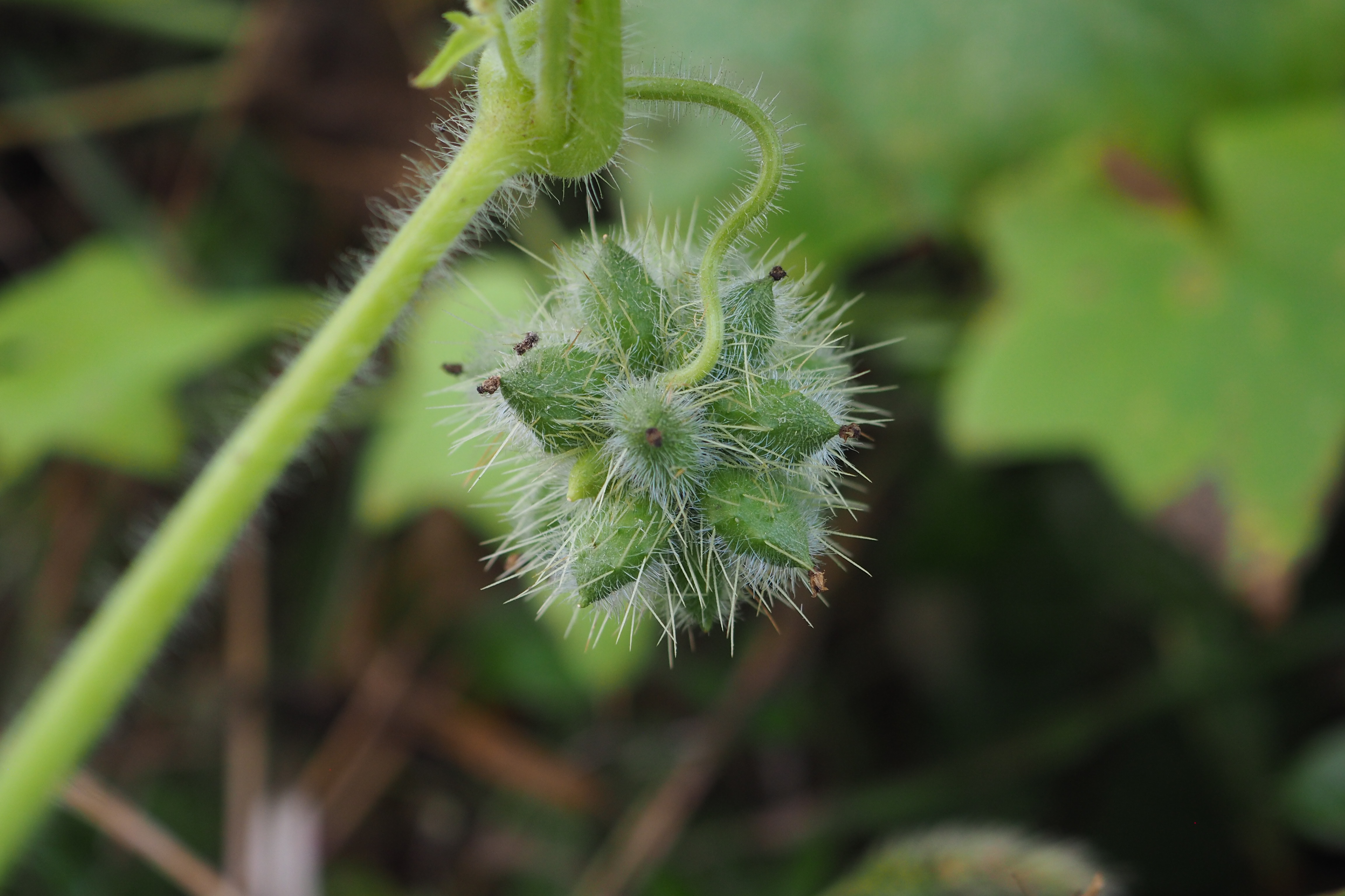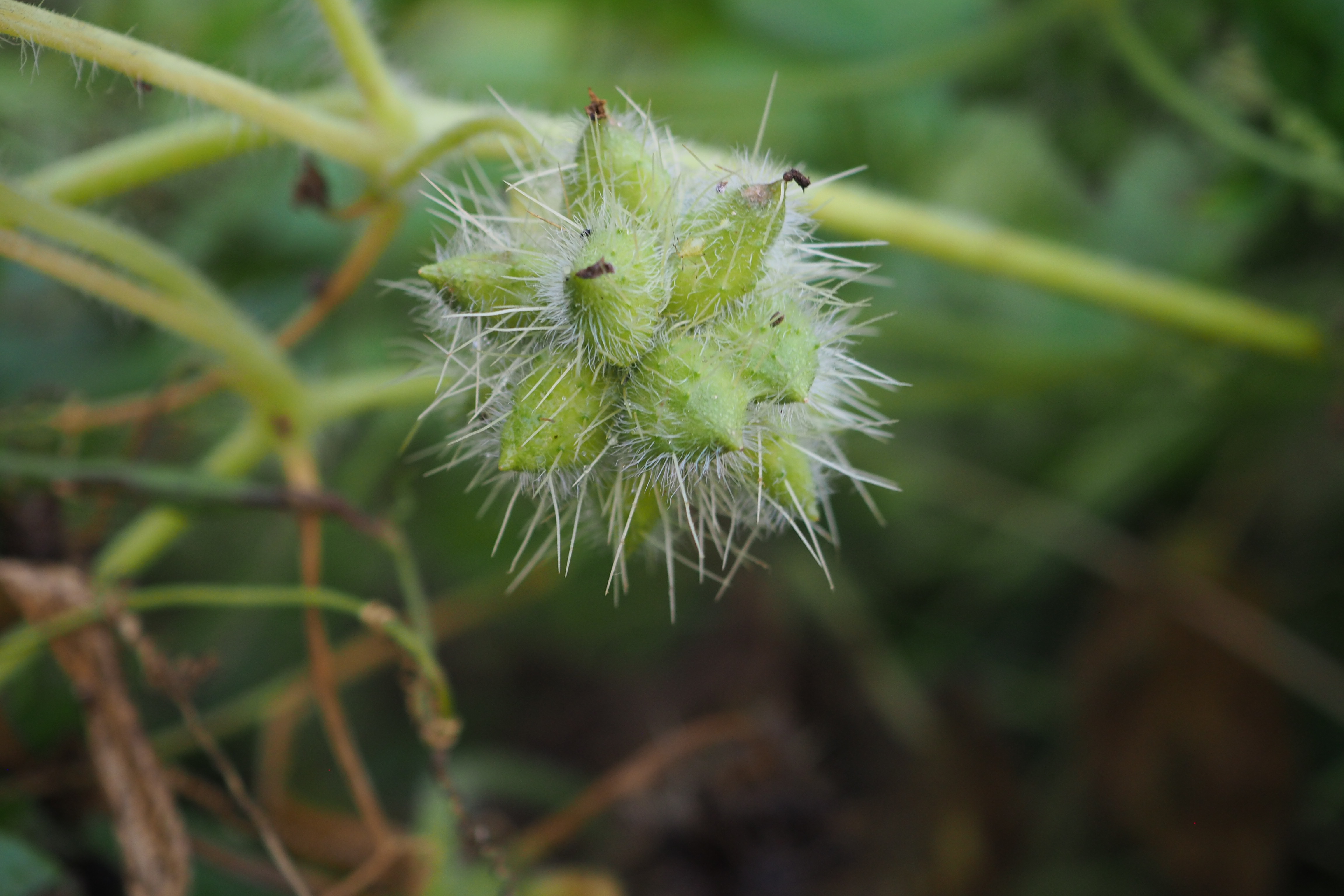 가시투성이의 이 열매가 하천변에 마구 산포되어 그 무성한 덩굴이 나무와 풀들을 다 삼켜 버릴 듯 덮어 버리니.