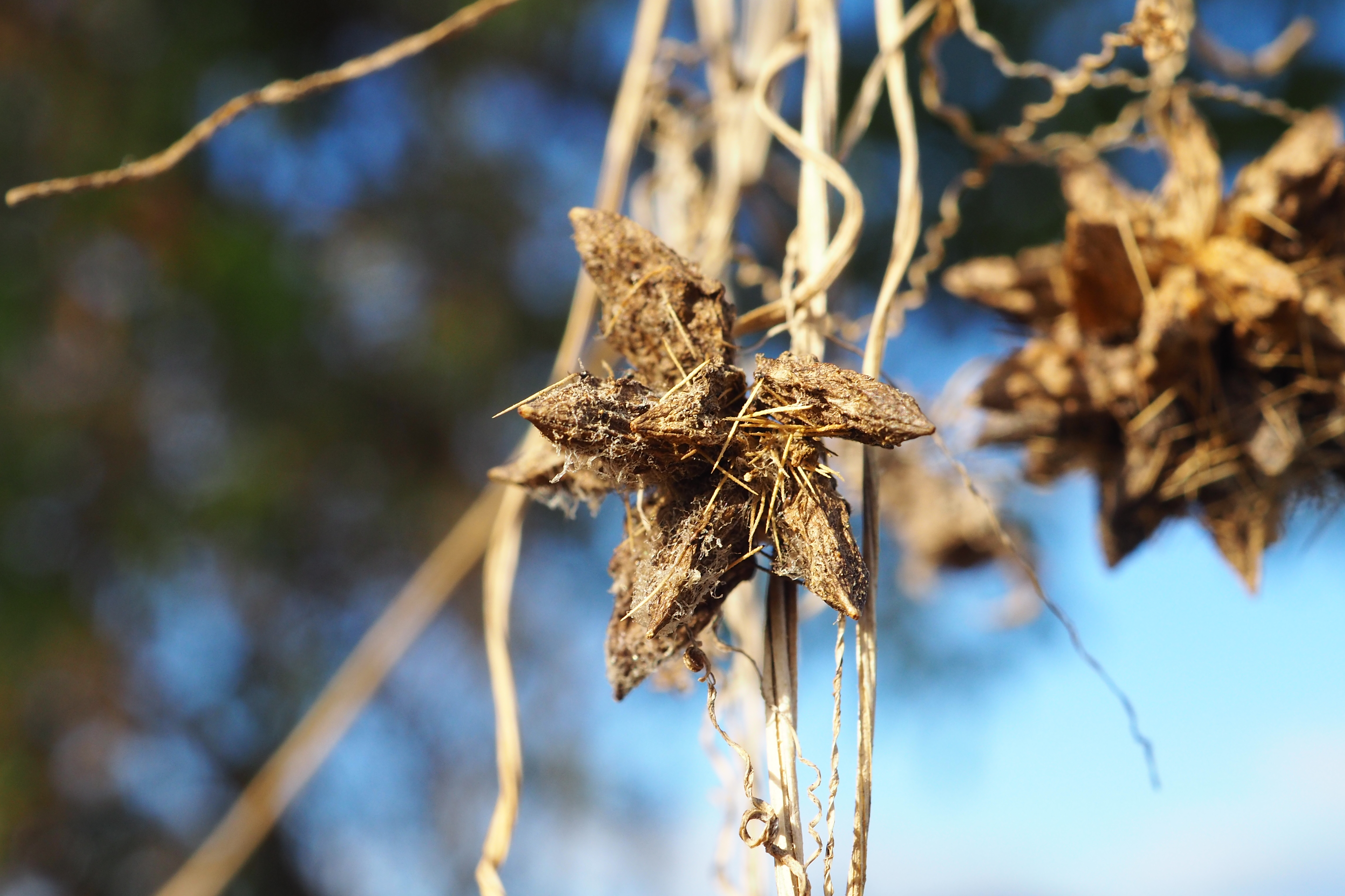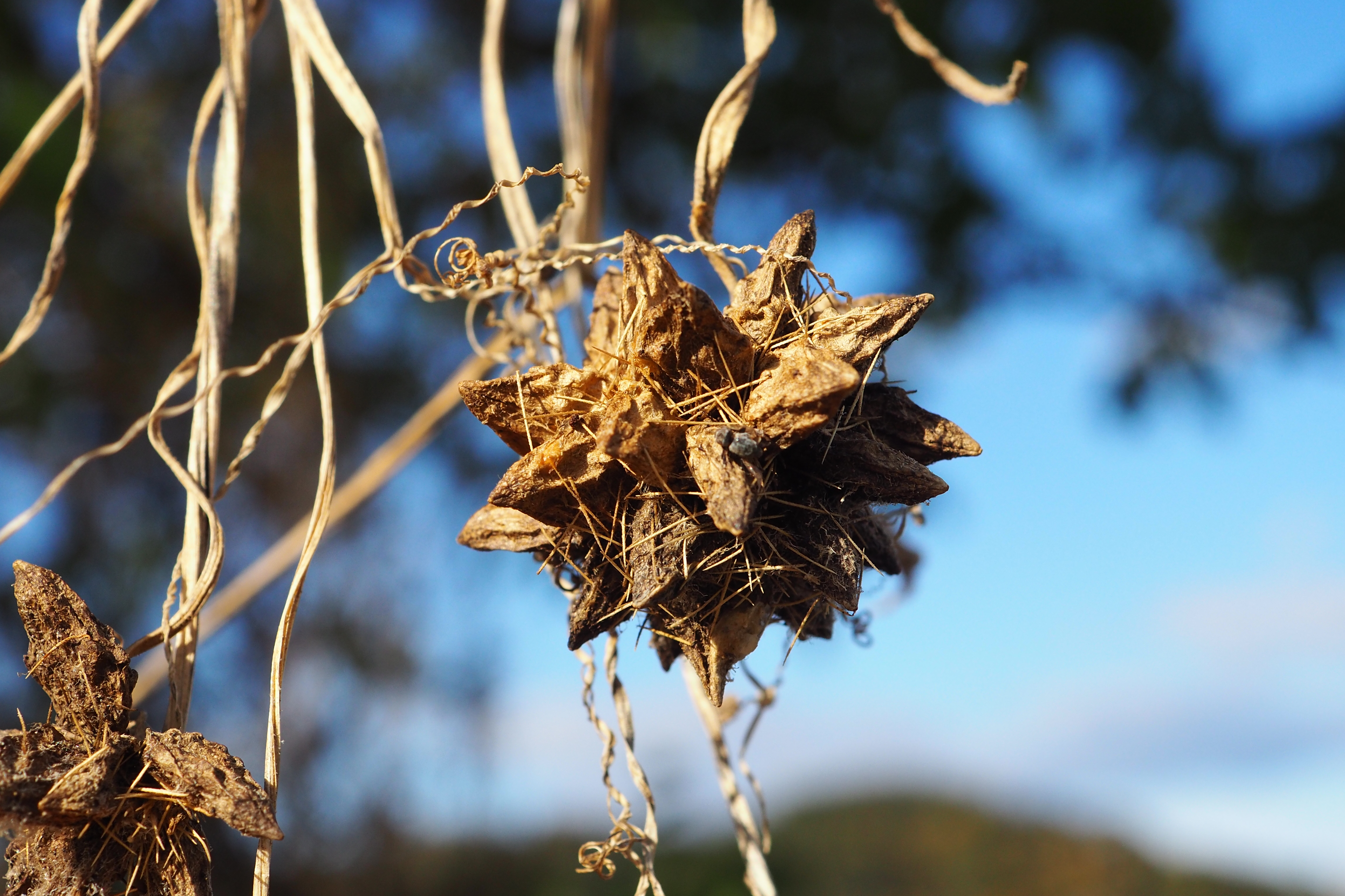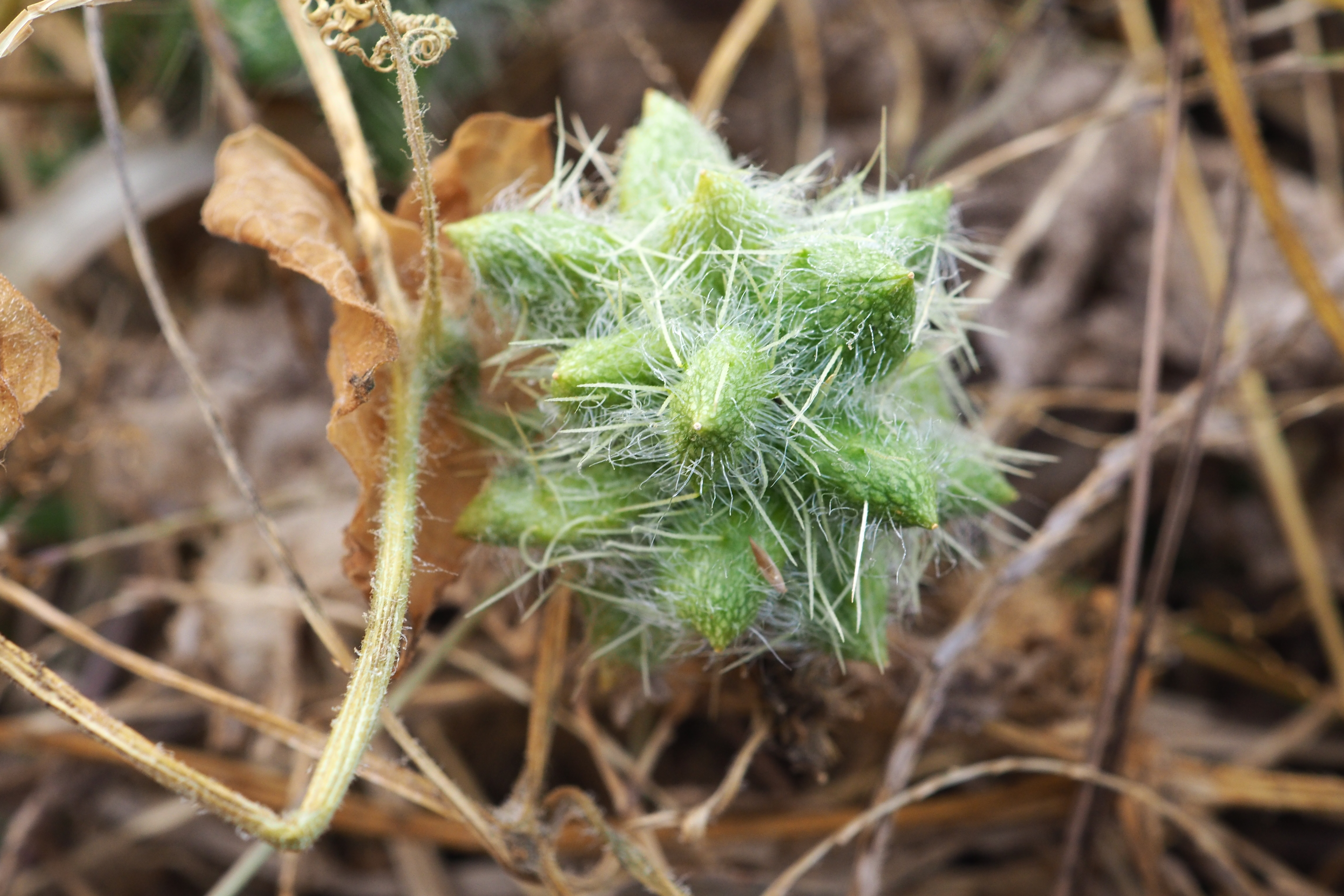 가시투성이의 이 열매가 하천변에 마구 산포되어 그 무성한 덩굴이 나무와 풀들을 다 삼켜 버릴 듯 덮어 버리니.