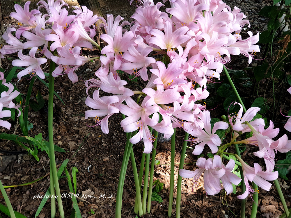 시골 집 마당 가 꽃밭에 흔히 심는 상사화.