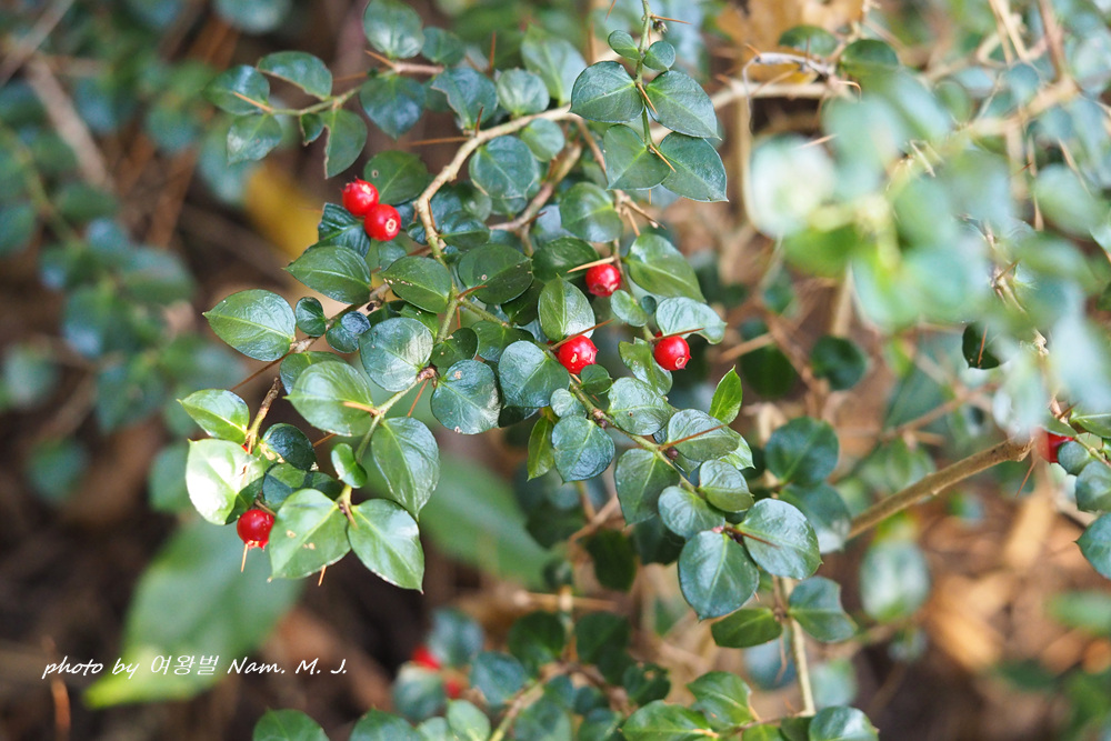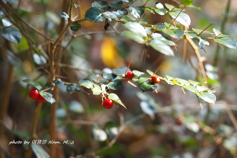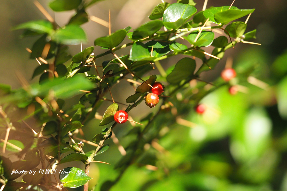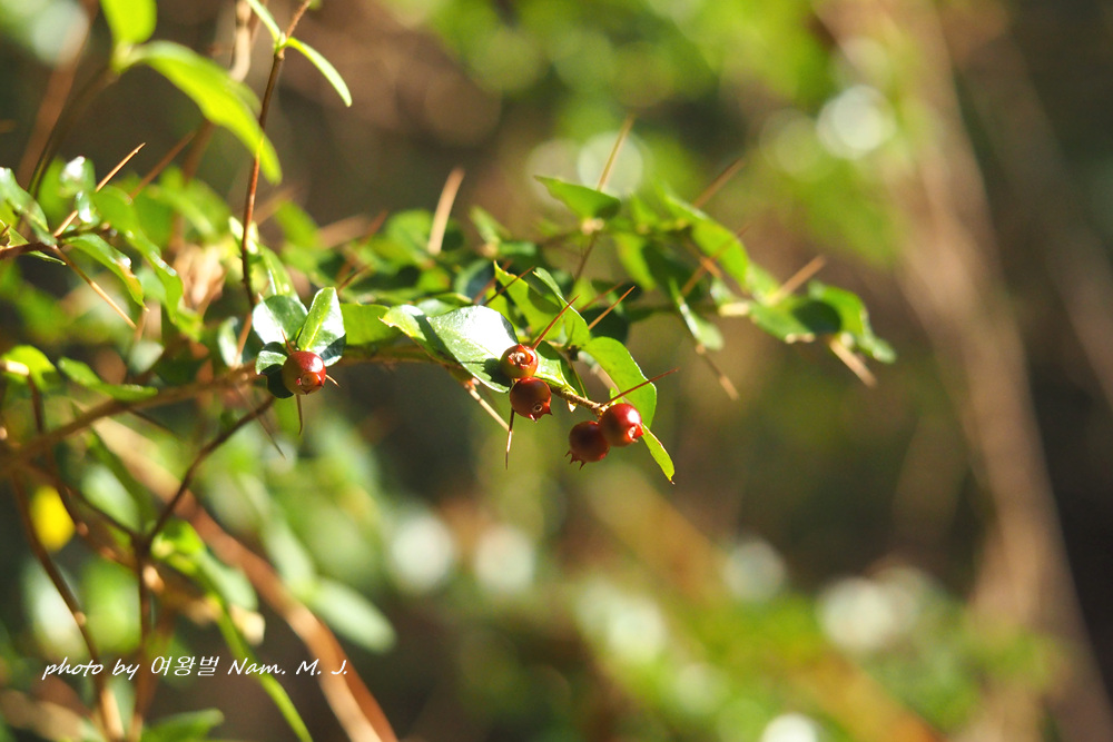 늘 다니던 숲의 호자나무열매가 붉게 색을 내며 익고 있다.