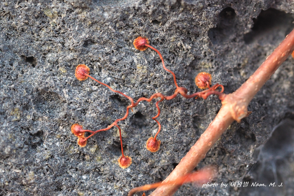 잎 겨드랑이에서 빨판 같은 흡반으로 바위벽이나 물체에 압착하여 줄기를 지지하면서 기어오른다