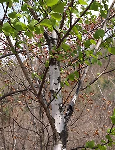 2010. 4. 29. 안동. 자작나무과 중 몇 종은 수피가 하얗고 껍질이 종잇장처럼 얇게 벗겨지는 특징이 있다. 그 중에서 거제수나무, 사스래나무, 자작나무, 물박달나무가 하얗게 껍질을 벗기는데 자작나무와 거제수나무는 수피가 매끈하고 곱게 벗겨지고, 사스레나무와 물박달나무는 줄기가 울퉁불퉁하여 벗겨지는 모양새가 어설프다. 우선 잎맥으로도 쉬 구분을 하는데 거제수나무 : 10~16쌍(어긋나기, 길쭉한 달걀형으로 끝이 아주 길게 뾰족함) 자작나무 : 5~8쌍(어긋나기. 세모진 달걀형, 끝이 뾰족) 사스래나무 : 7~11쌍.(어긋나기, 세모진 달걀형, 끝이 길게 뾰족, 얕은 심장저) 물박달나무 : 6~8쌍(어긋나기, 달걀형, 잎자루와 잎 양면 맥 위의 털) 개박달나무 : 6-10(보통 8-10)쌍,(난형 또..